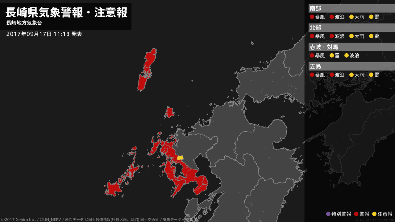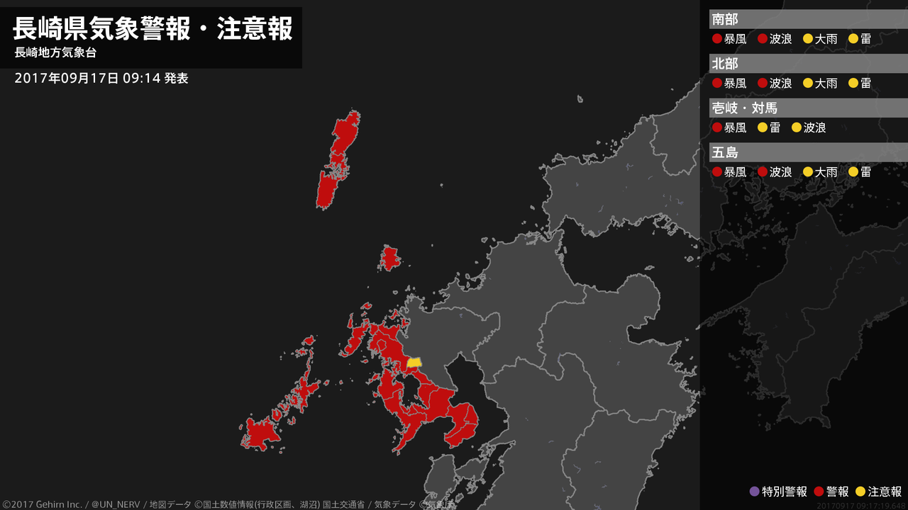 【長崎県 気象警報・注意報 2017年09月17日 09:17】