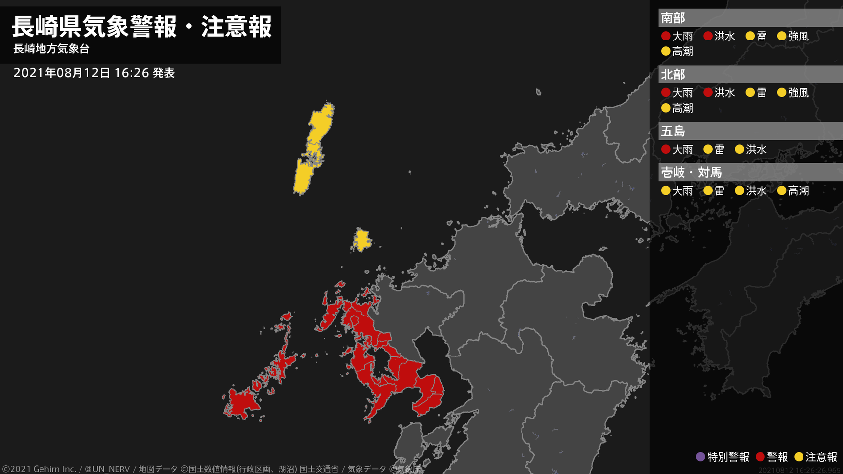 【長崎県 気象警報・注意報 2021年08月12日 16:26】