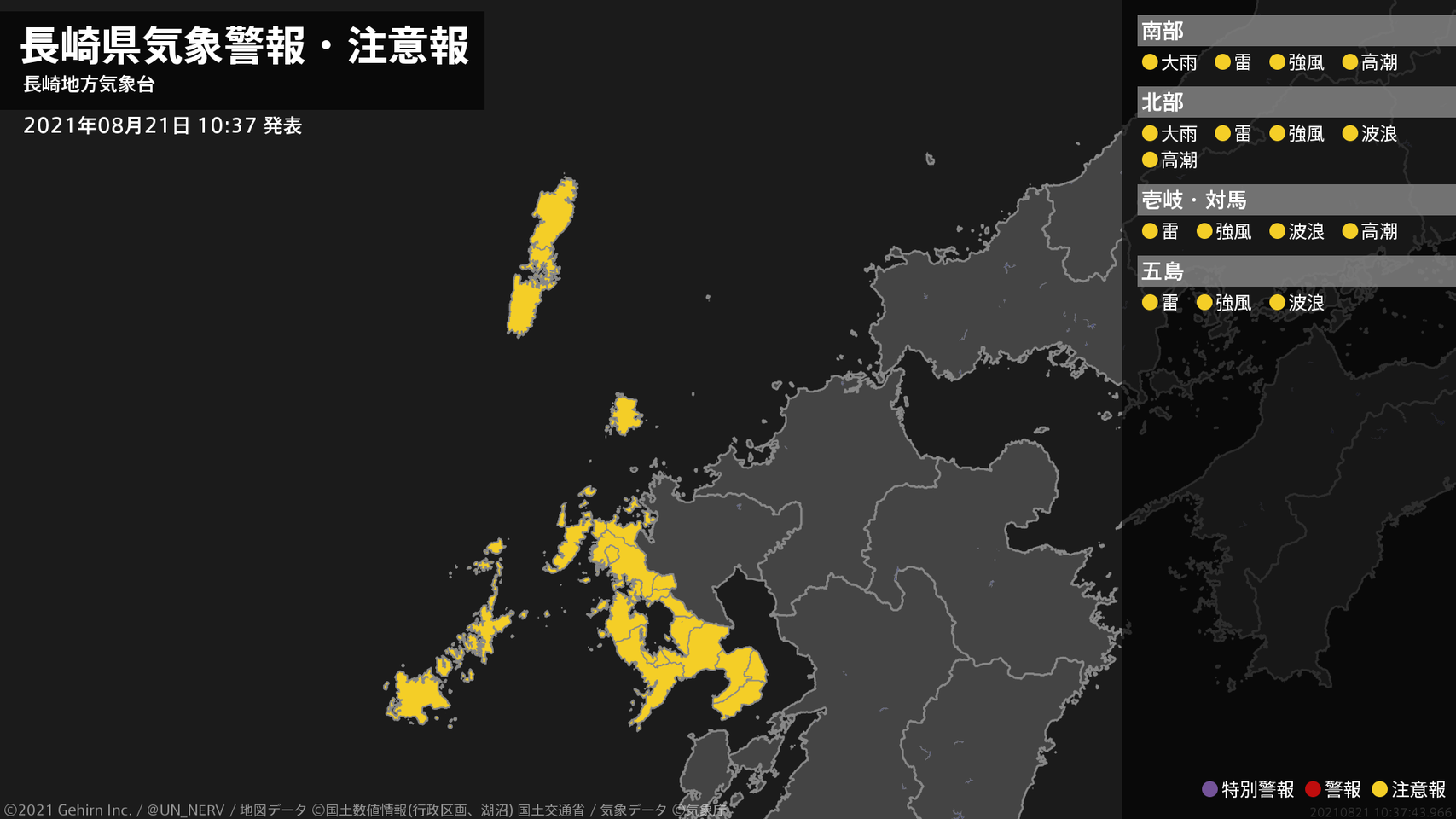 【長崎県 気象警報・注意報 2021年08月21日 10:37】