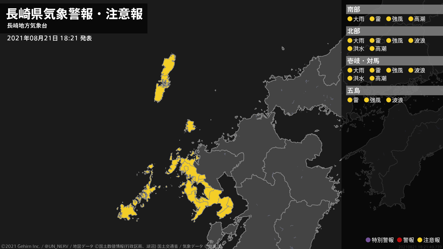 【長崎県 気象警報・注意報 2021年08月21日 18:21】