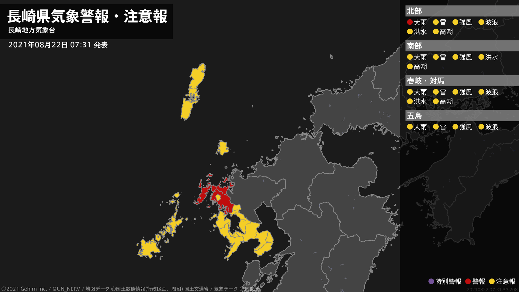 【長崎県 気象警報・注意報 2021年08月22日 07:31】