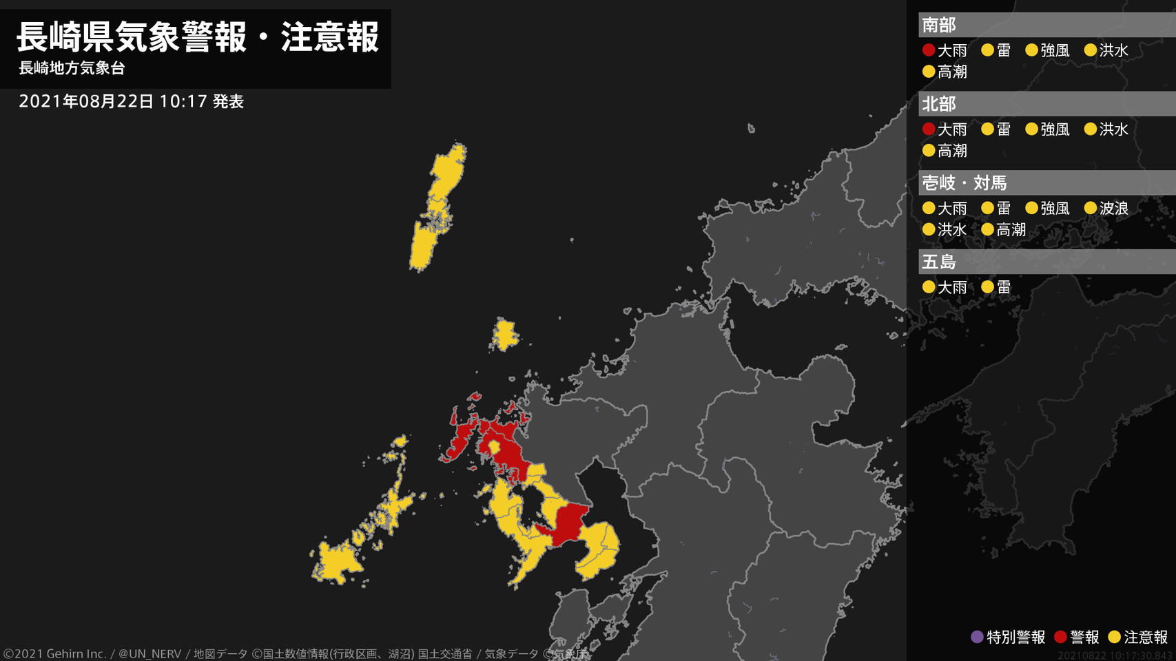 【長崎県 気象警報・注意報 2021年08月22日 10:17】