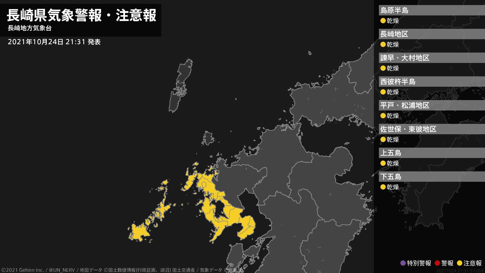 【長崎県 気象警報・注意報 2021年10月24日 21:31】