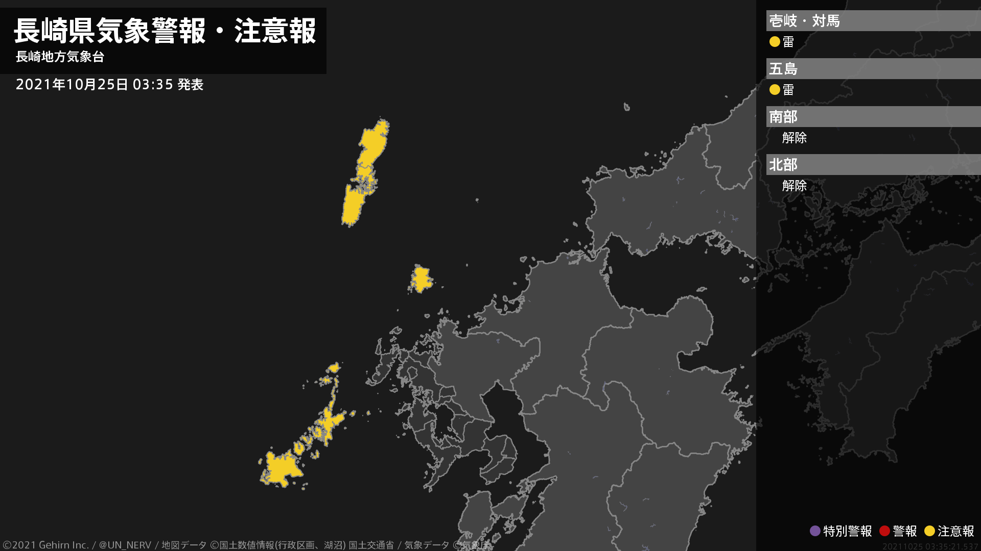 【長崎県 気象警報・注意報 2021年10月25日 03:35】