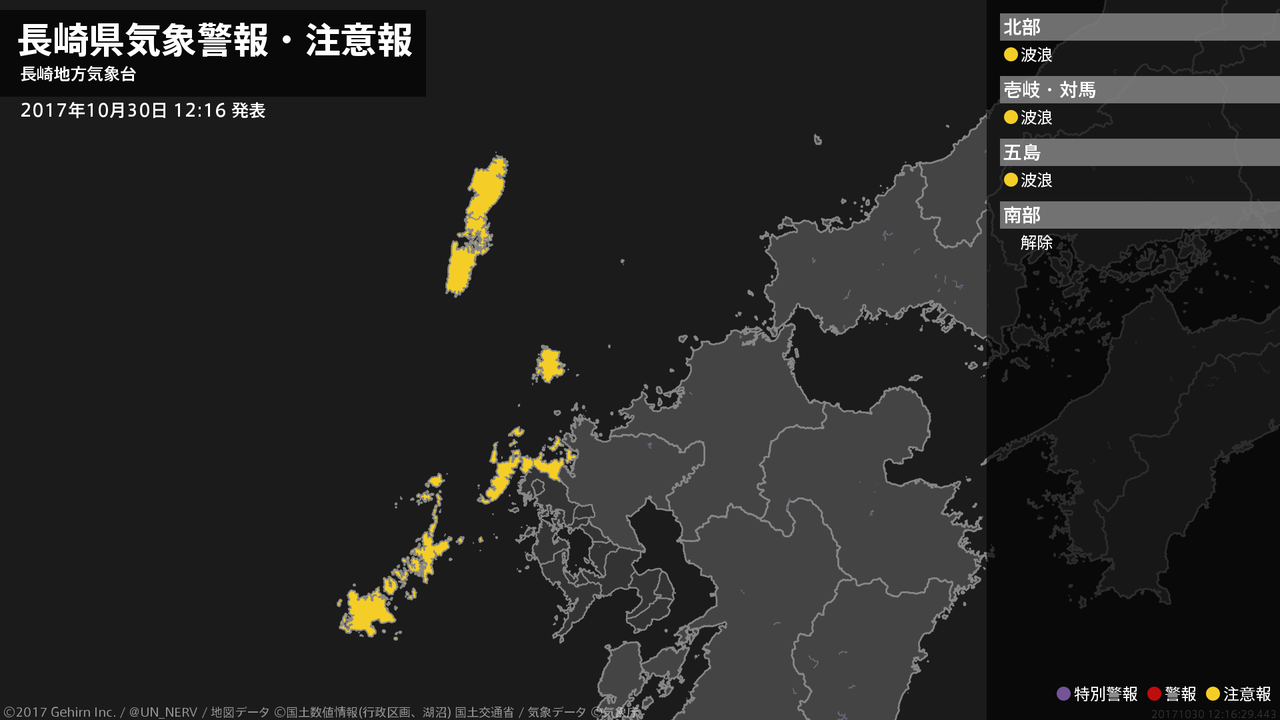 【長崎県 気象警報・注意報 2017年10月30日 12:16】