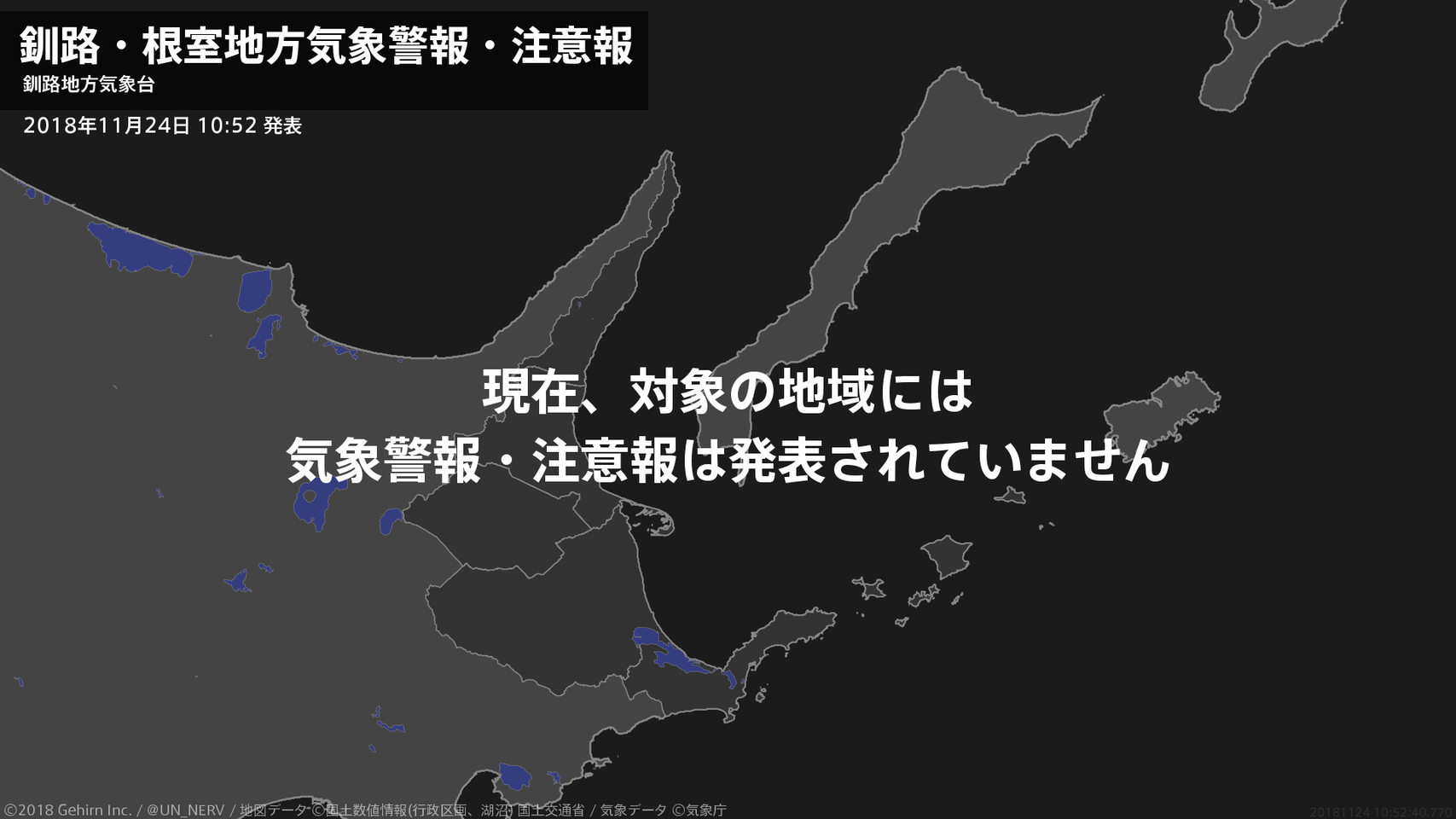 【釧路・根室地方 気象警報・注意報 2018年11月24日 10:52】注意報を解除します。#気象警報注意報 #根室地方