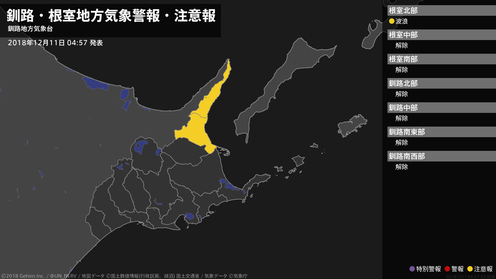 【釧路・根室地方 気象警報・注意報 2018年12月11日 04:57】