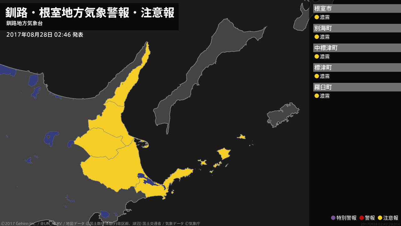 【釧路・根室地方 気象警報・注意報 2017年08月28日 02:49】