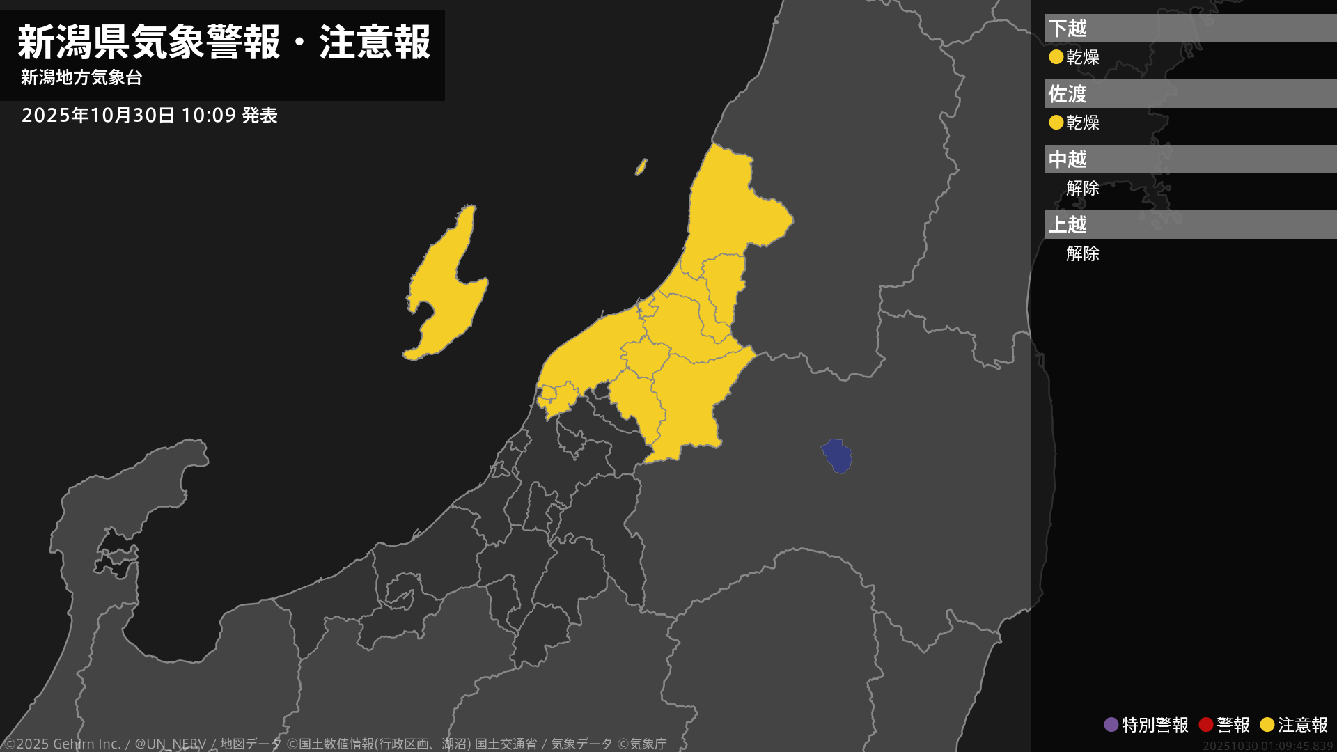【新潟県 気象警報・注意報 2025年10月30日 10:09】