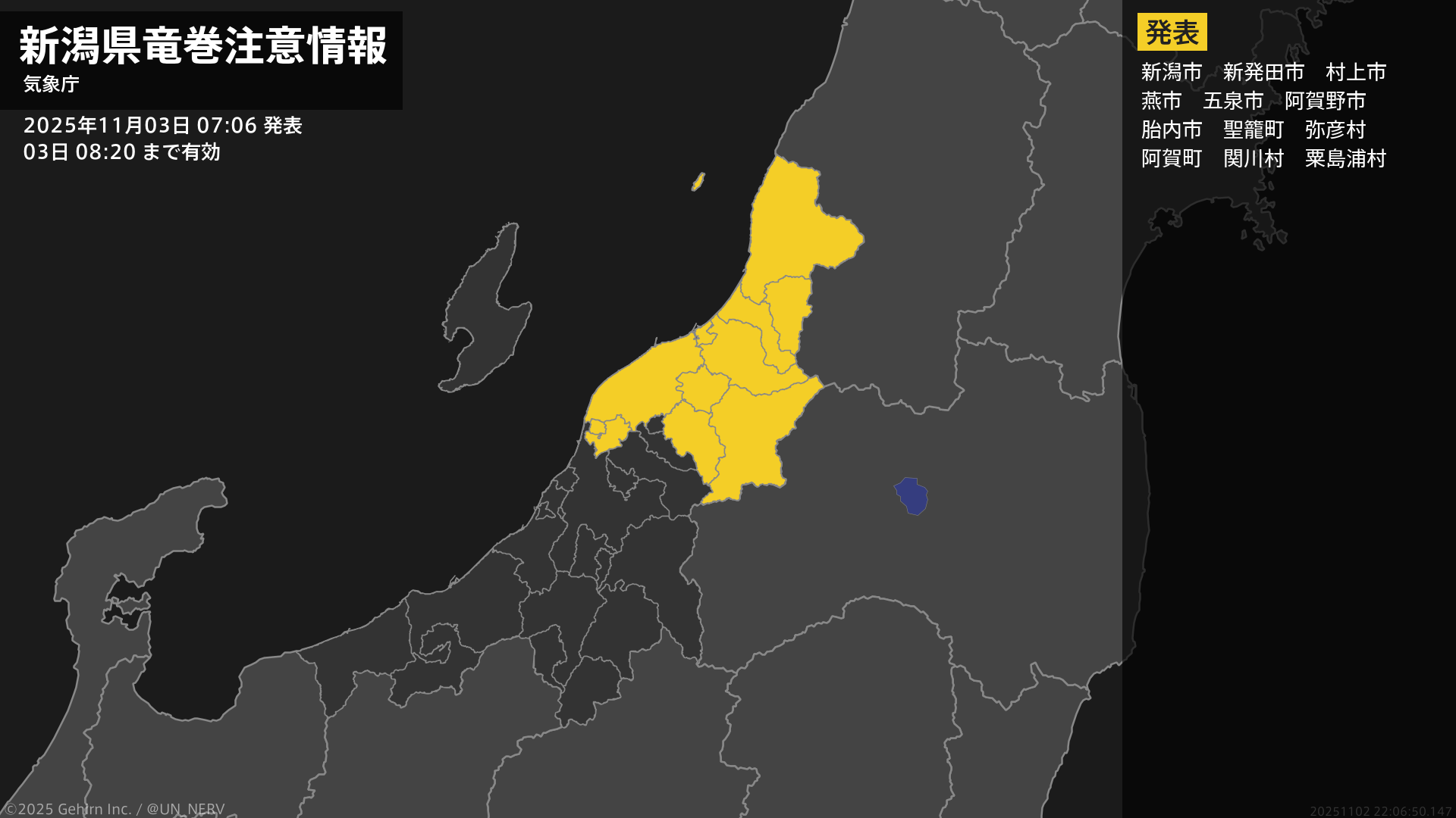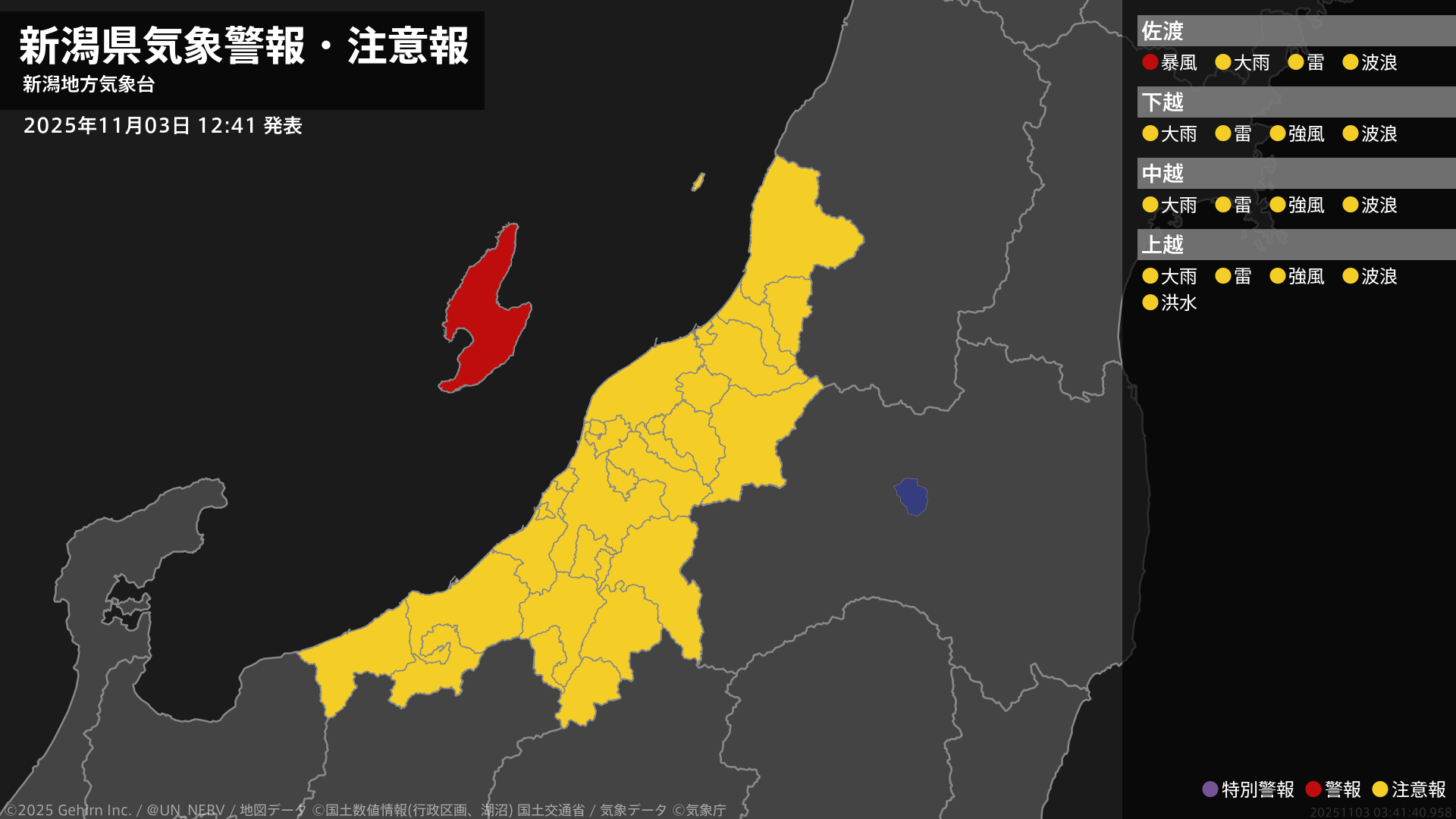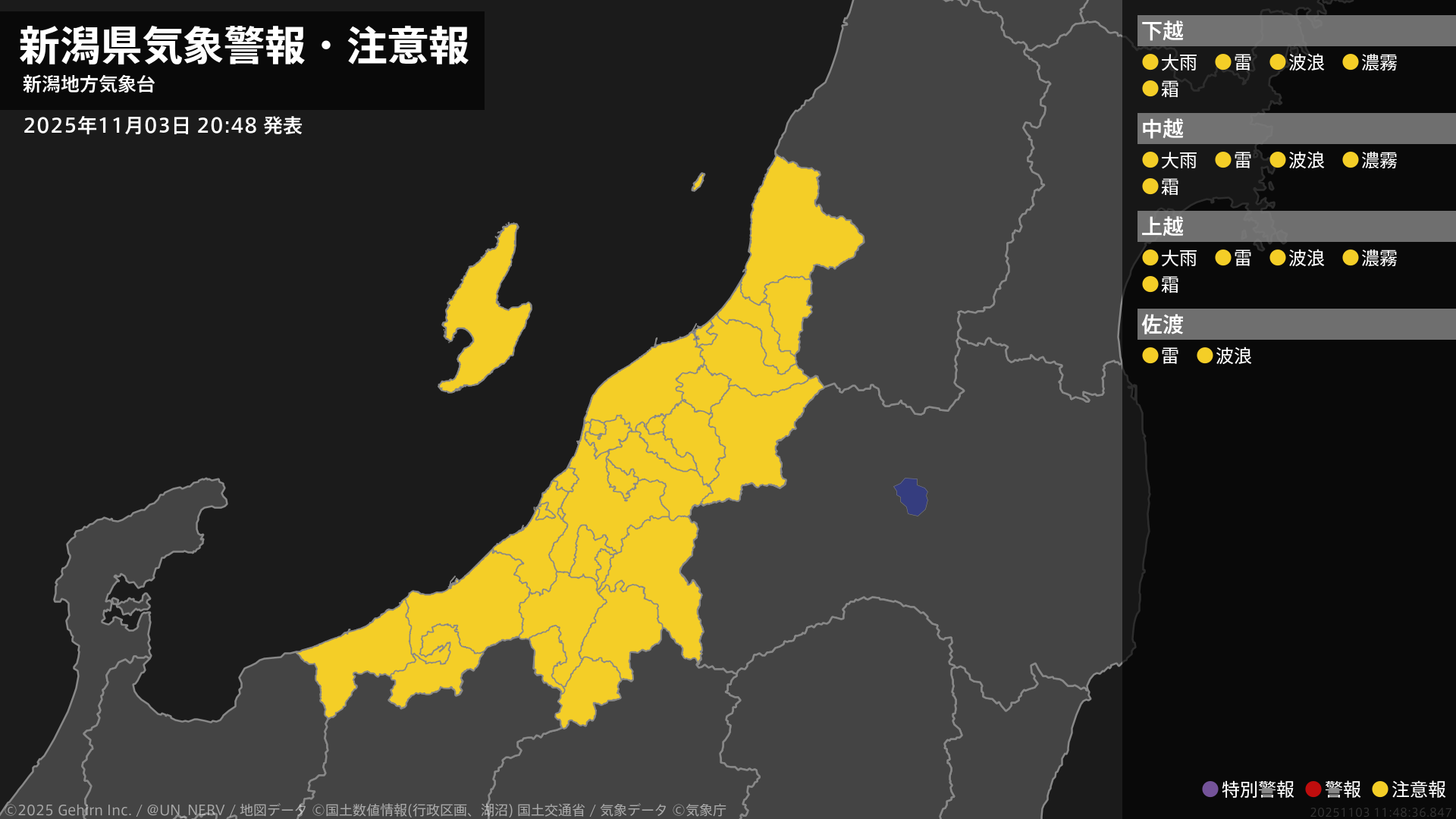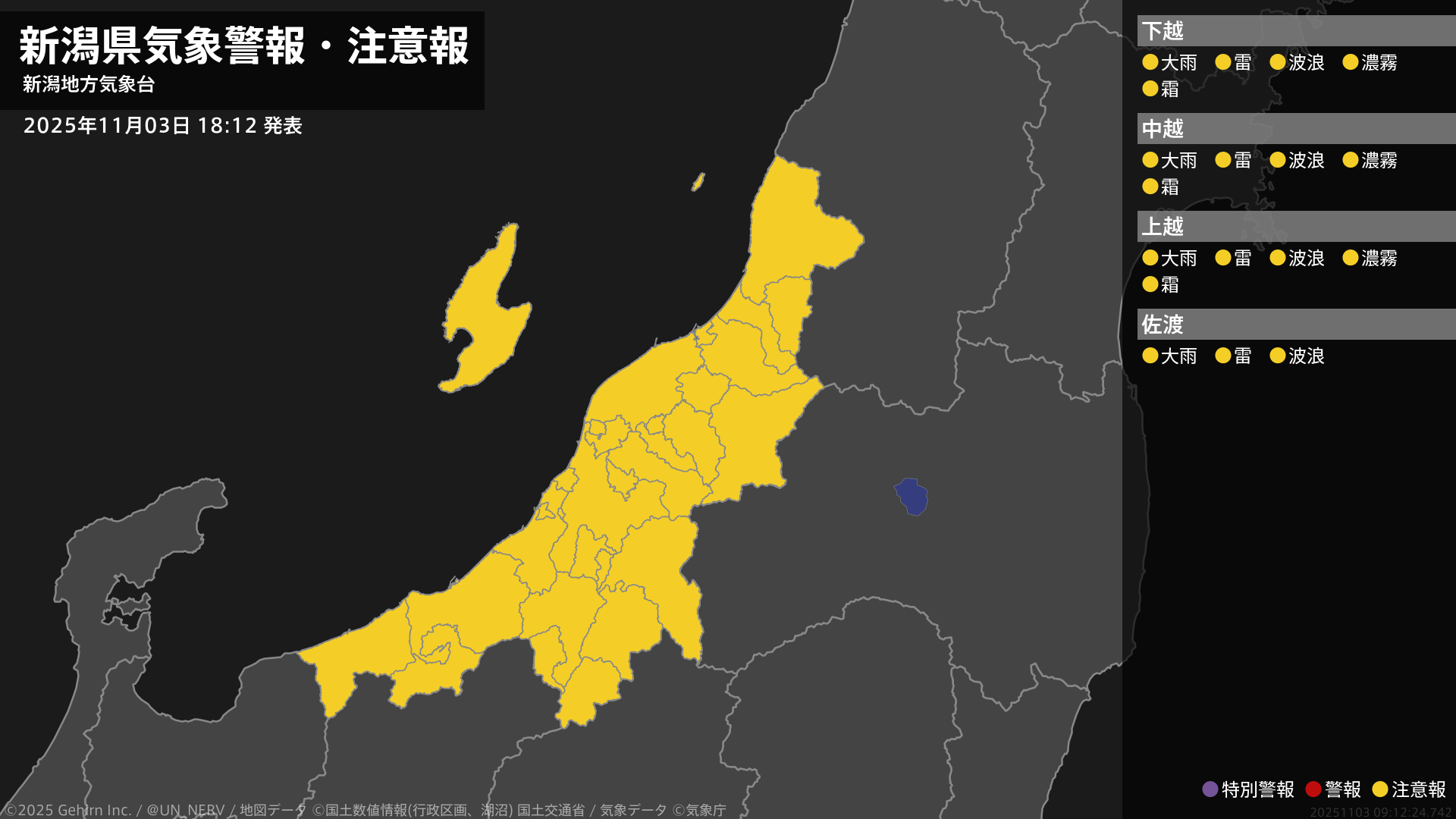 【大雨と雷及び突風に関する全般気象情報 2025年11月03日 16:51】