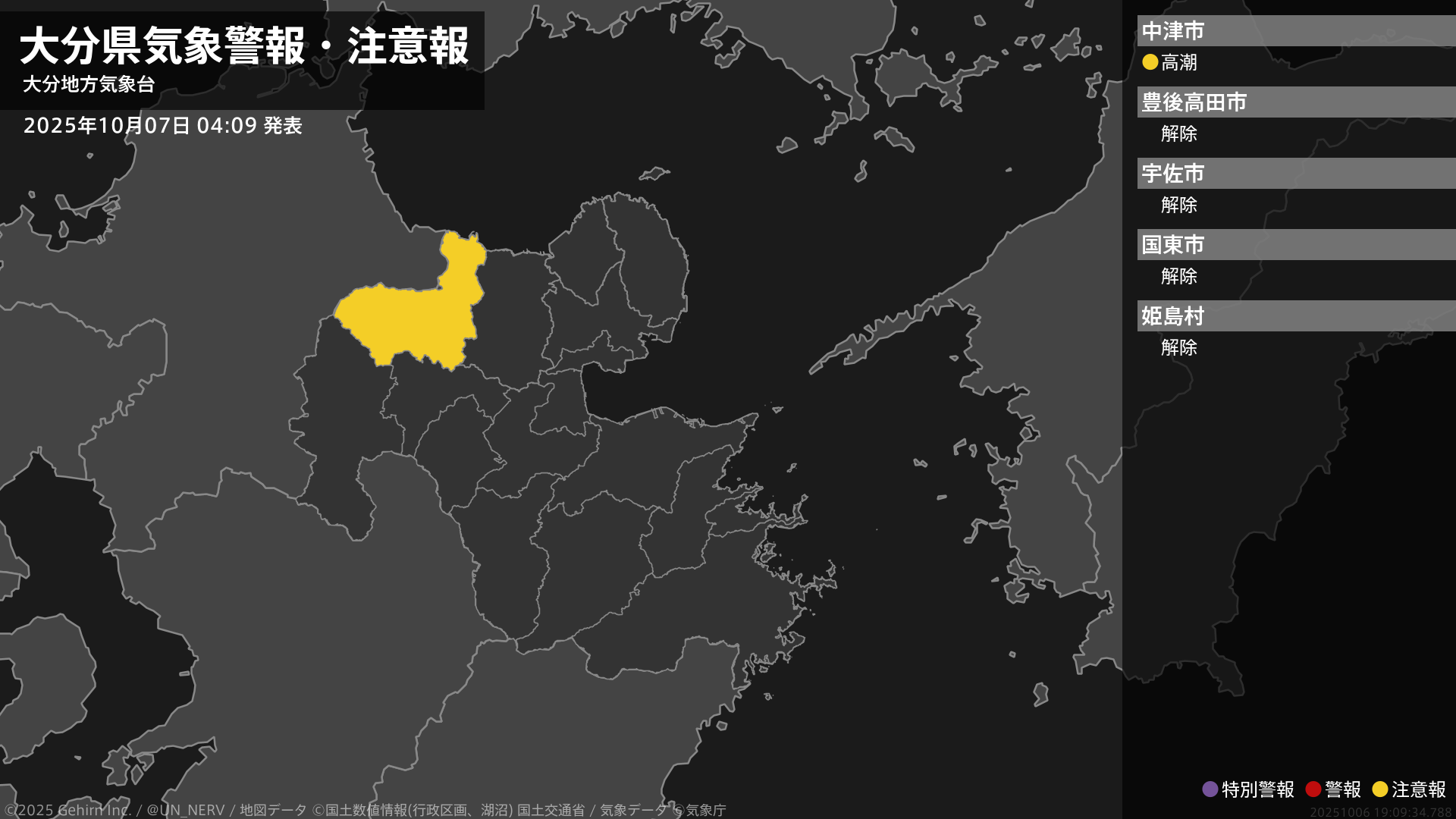 【大分県 気象警報・注意報 2025年10月07日 04:09】