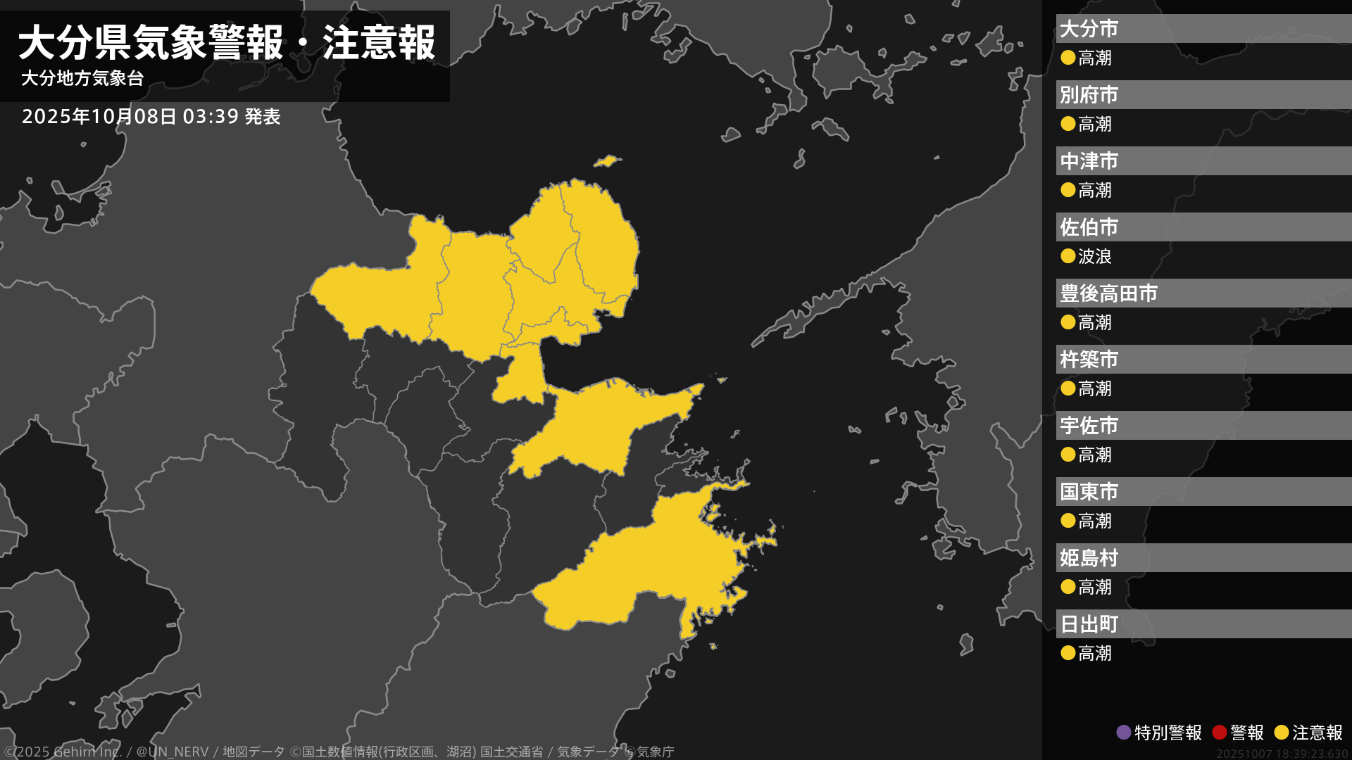 【大分県 気象警報・注意報 2025年10月08日 03:39】