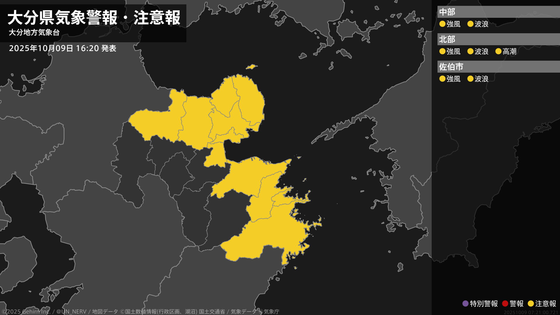【大分県 気象警報・注意報 2025年10月09日 16:21】