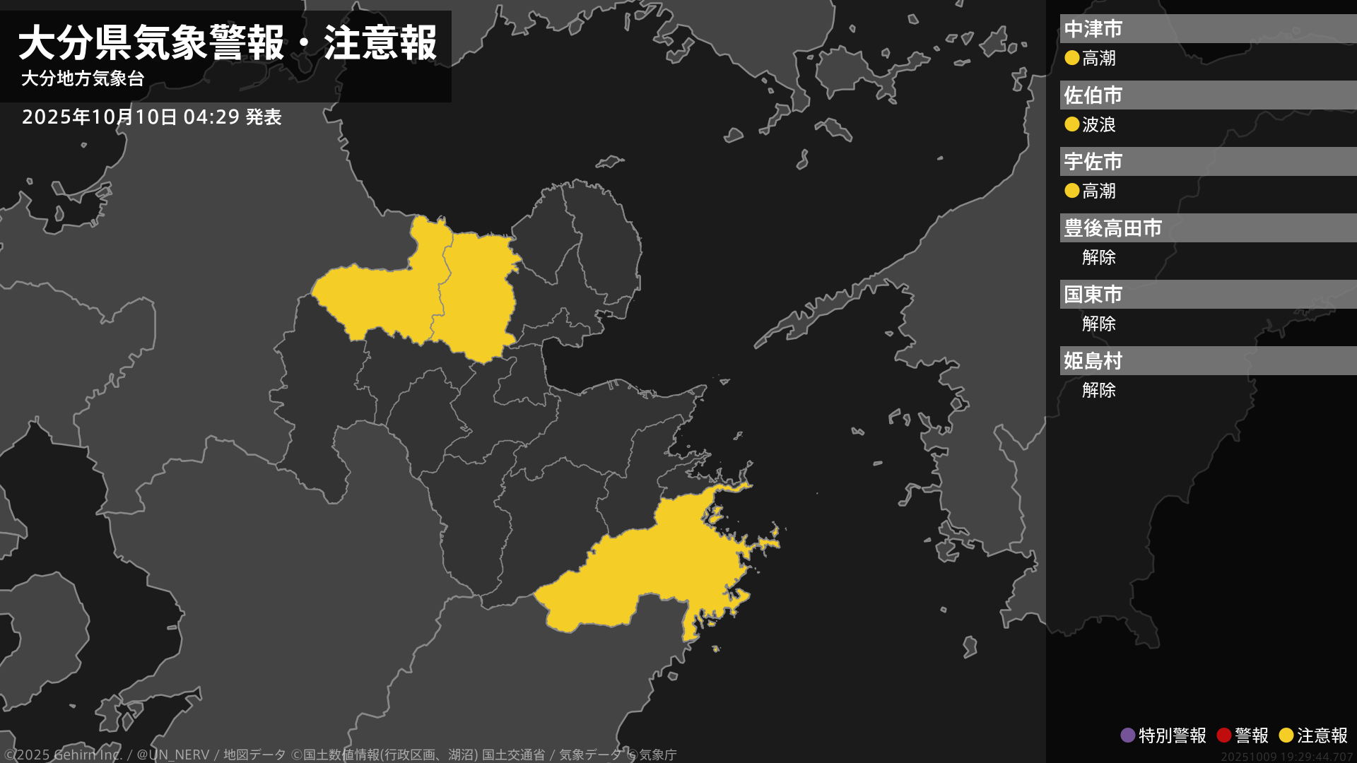 【大分県 気象警報・注意報 2025年10月10日 04:29】
