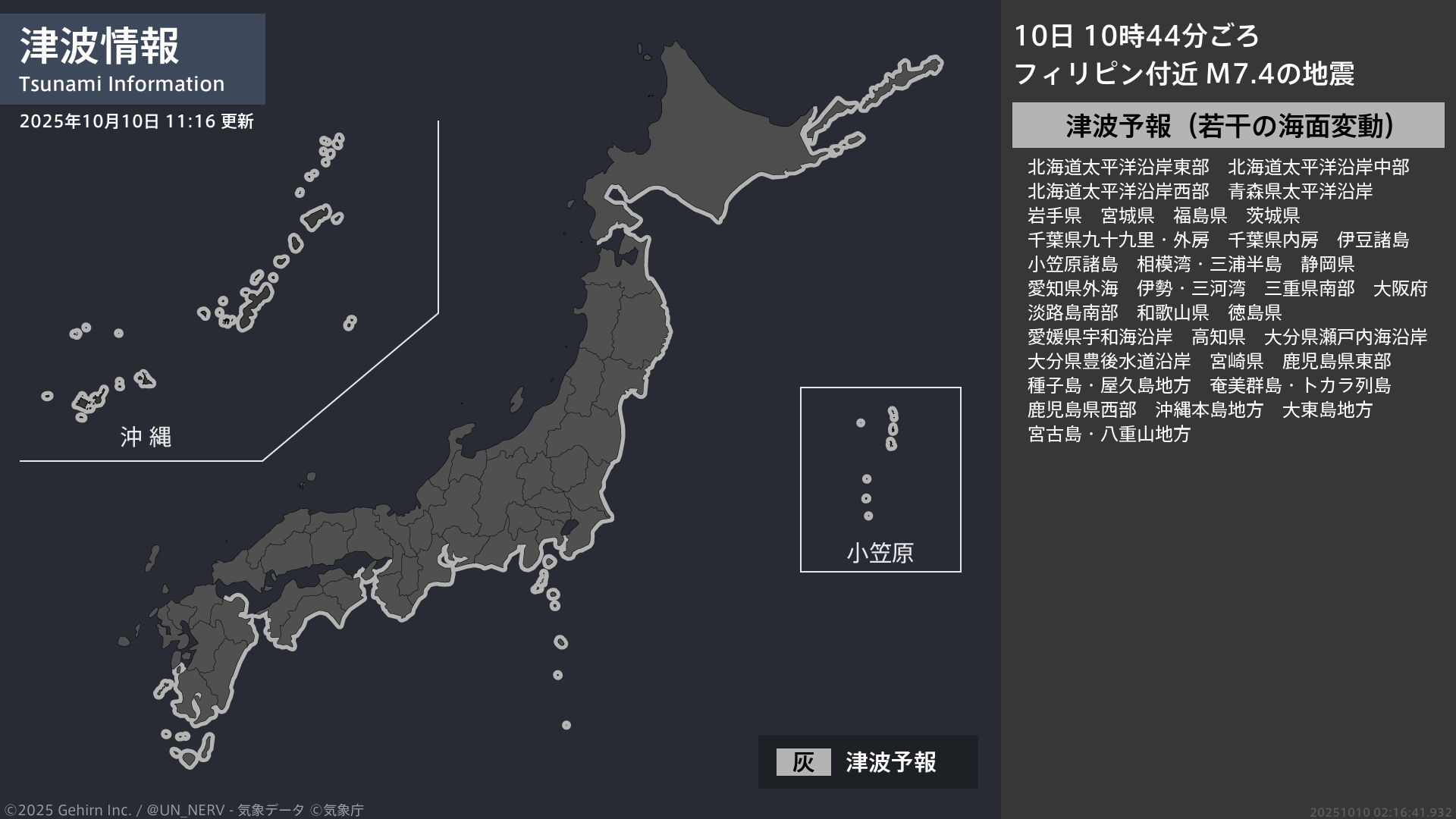 【津波情報 2025年10月10日】