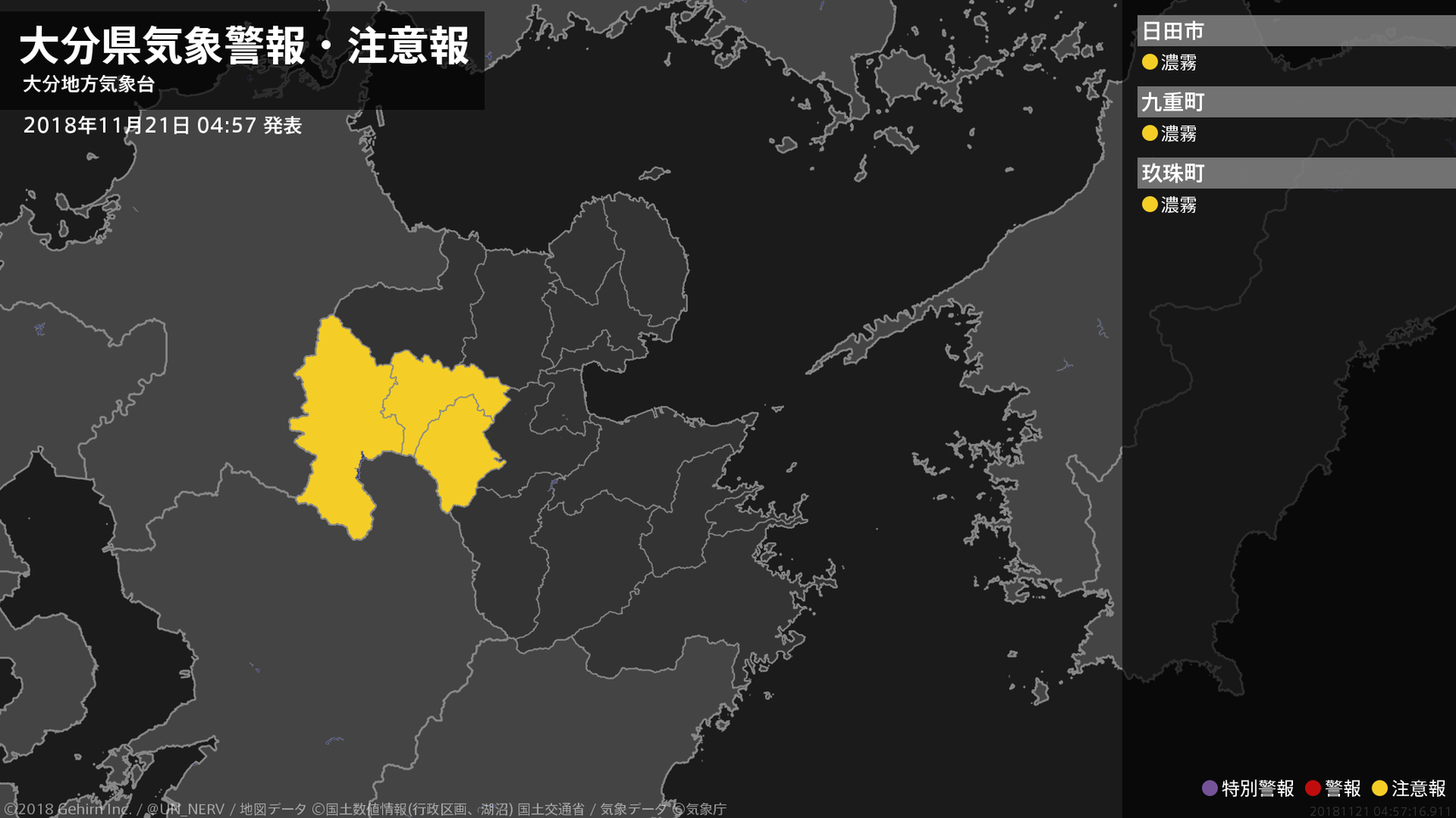 【大分県 気象警報・注意報 2018年11月21日 04:57】
