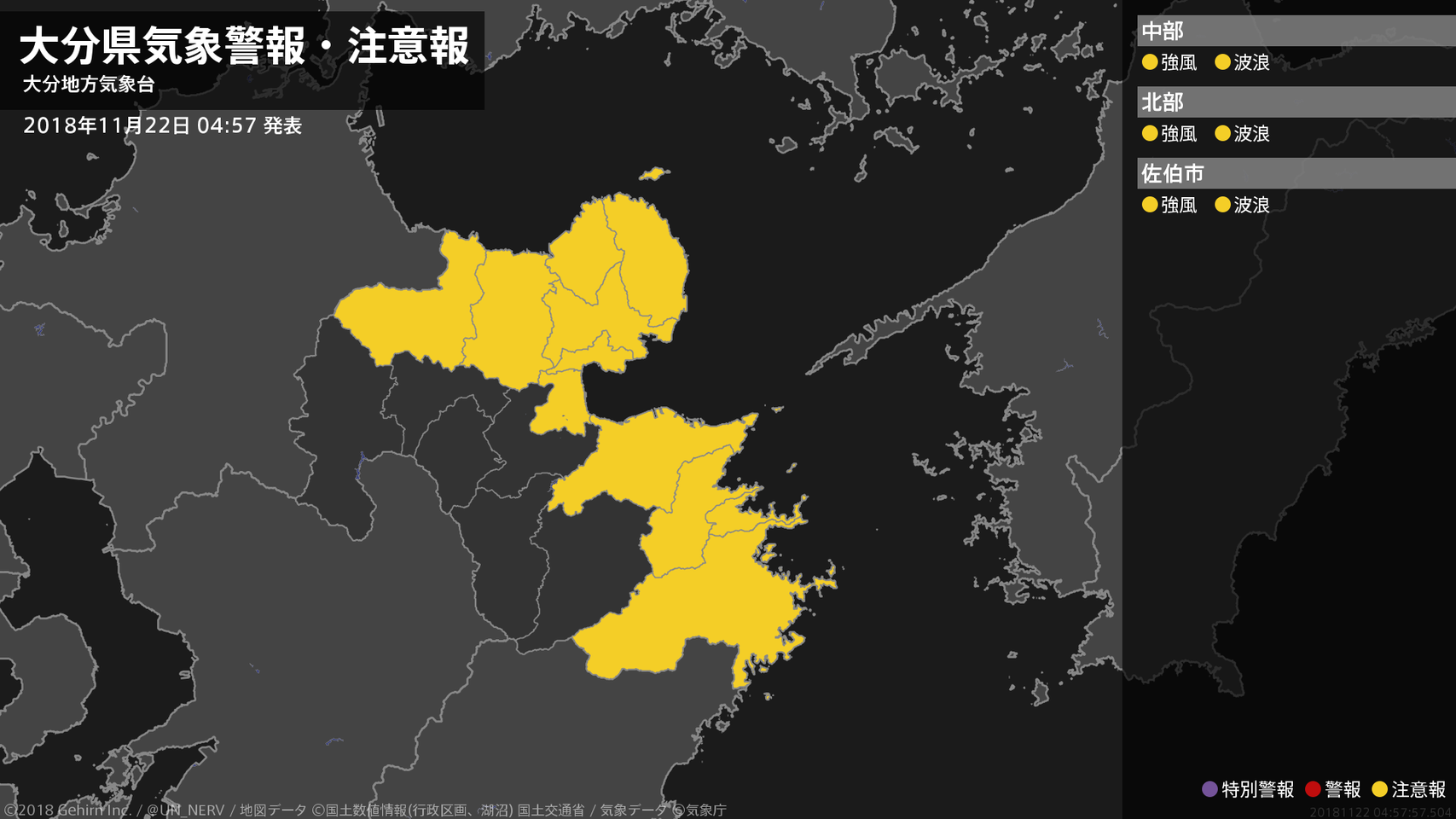 【大分県 気象警報・注意報 2018年11月22日 04:57】