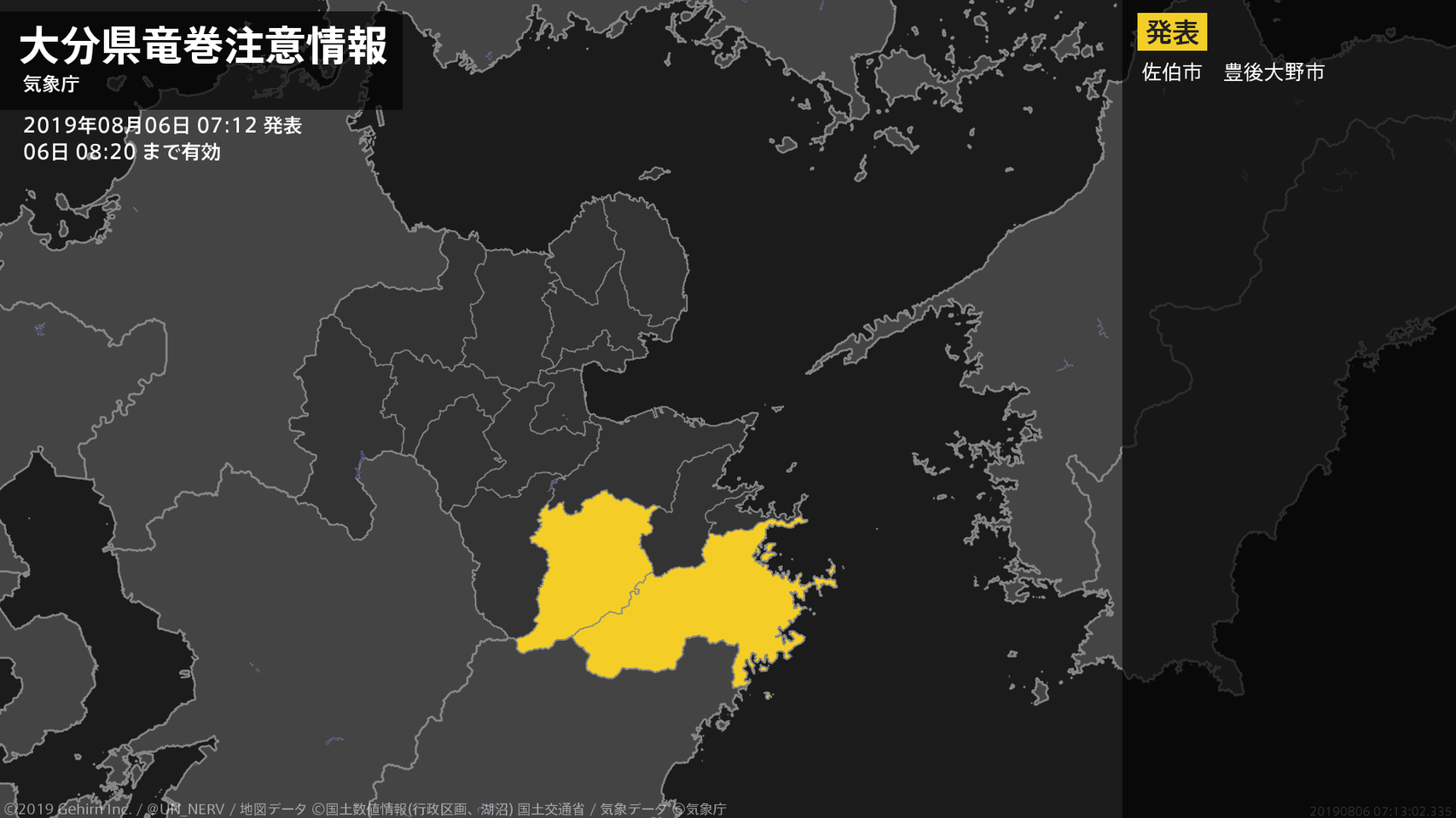 【大分県 気象警報 2019年08月06日 07:10】
