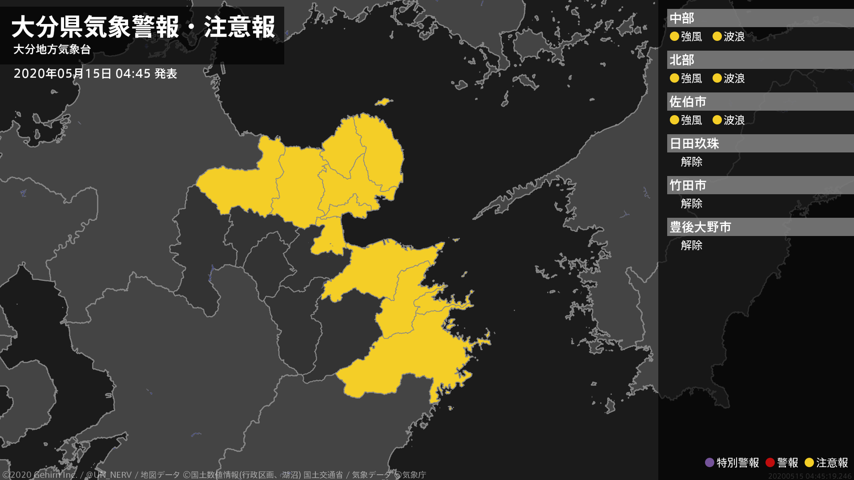 【大分県 気象警報・注意報 2020年05月15日 04:45】