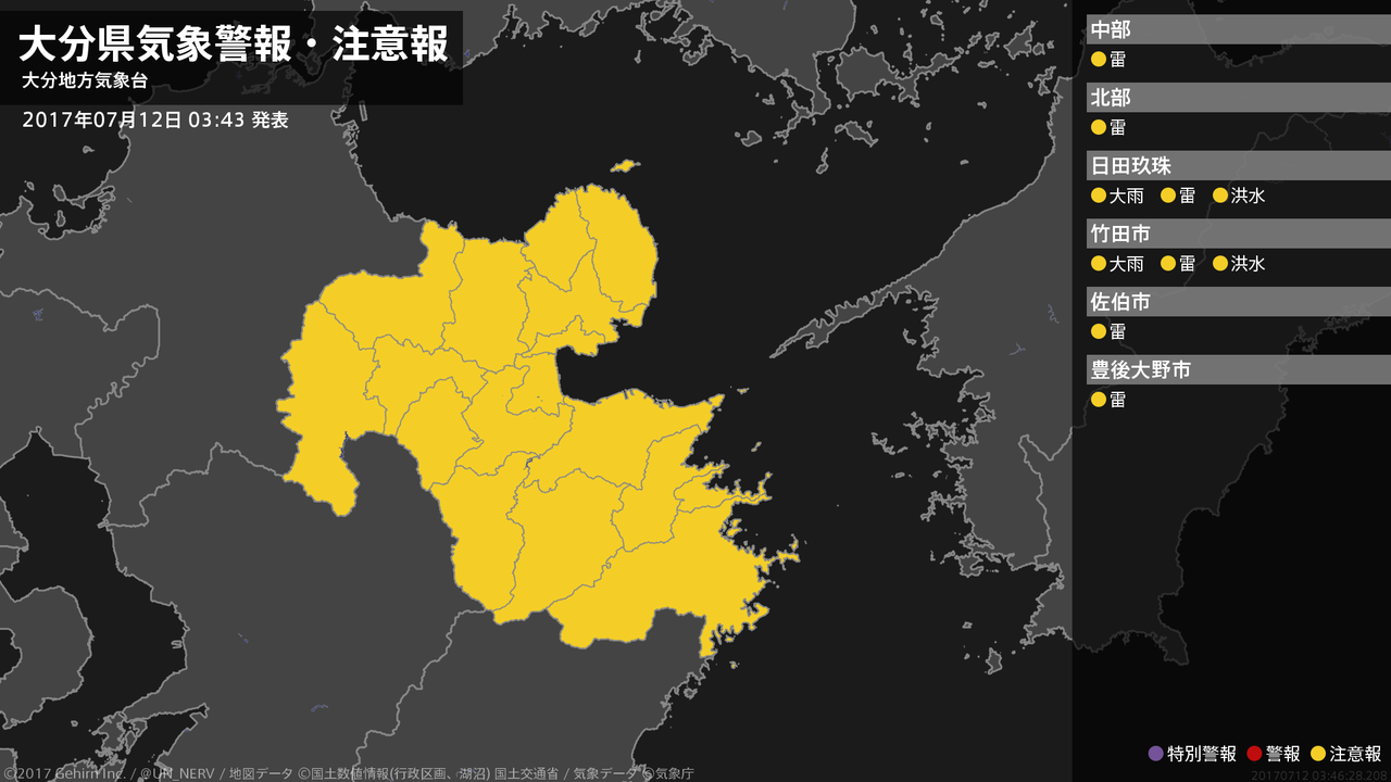 【大分県 気象警報・注意報 2017年07月12日 03:46】