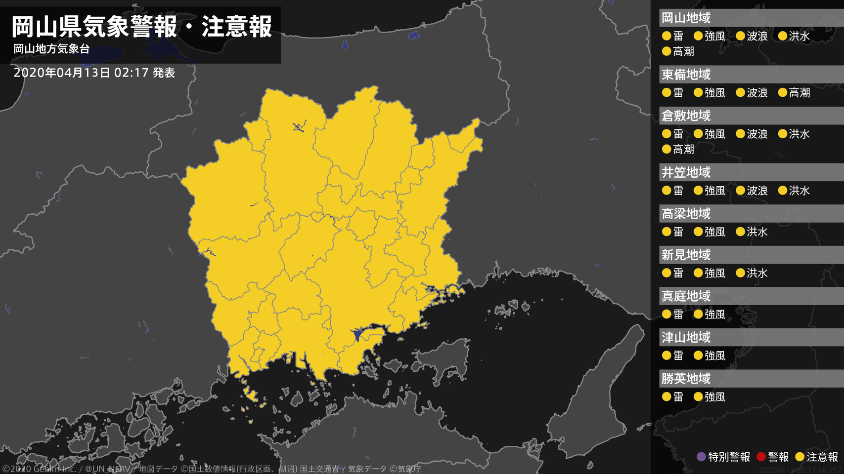 【暴風と高波及び大雨に関する全般気象情報 2020年04月13日 05:27】