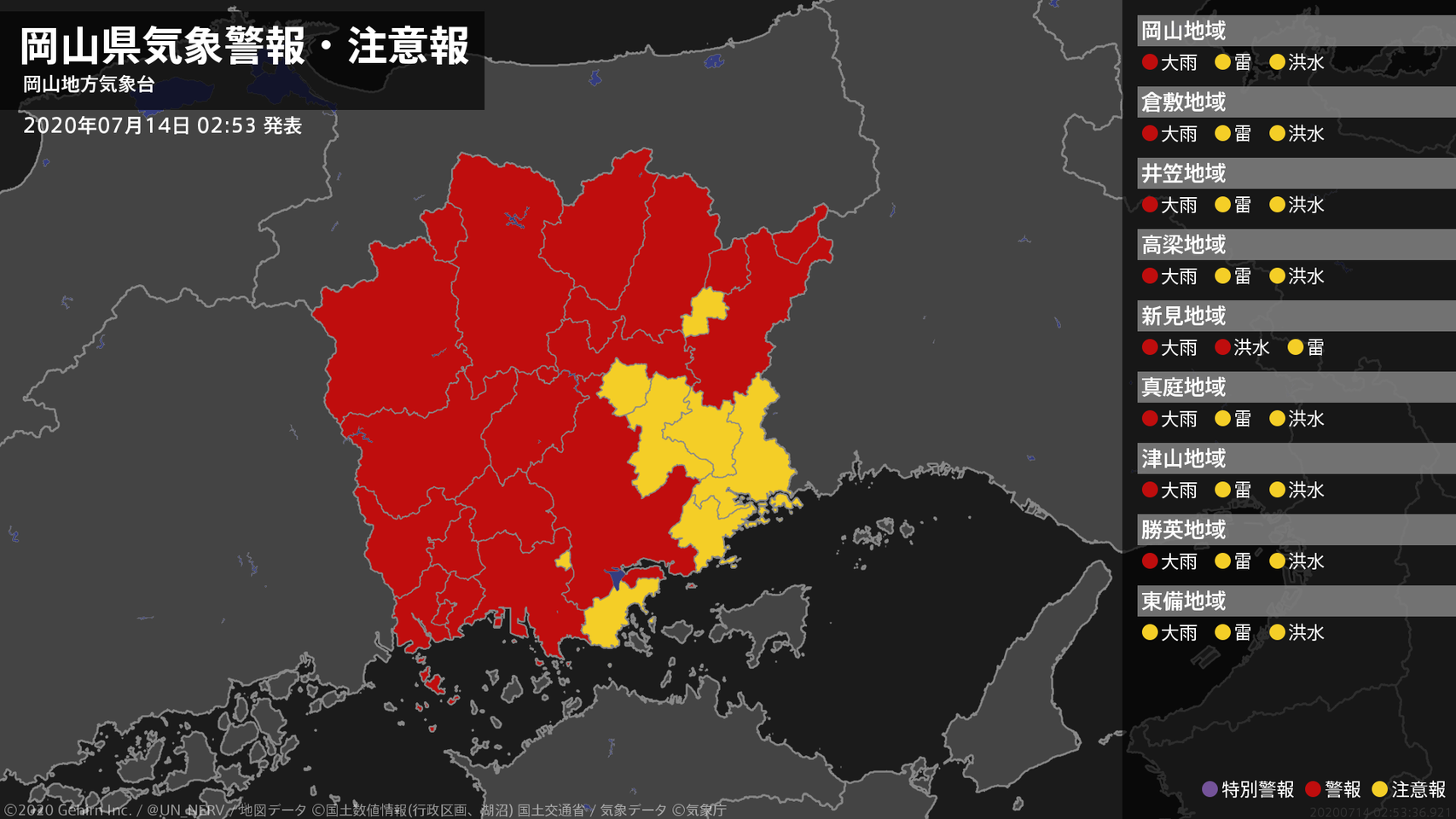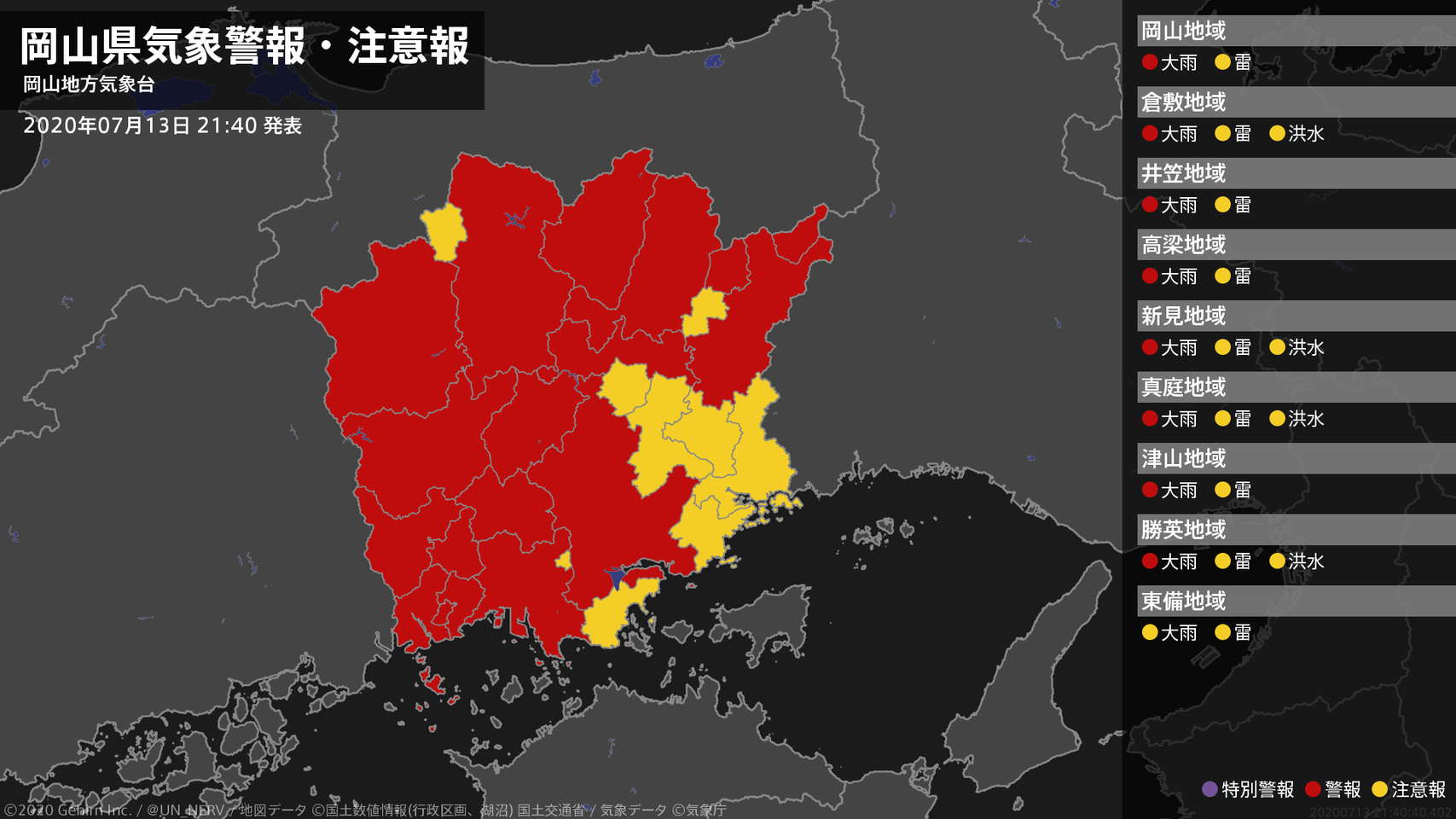 【大雨と雷及び突風に関する全般気象情報 2020年07月13日 16:53】