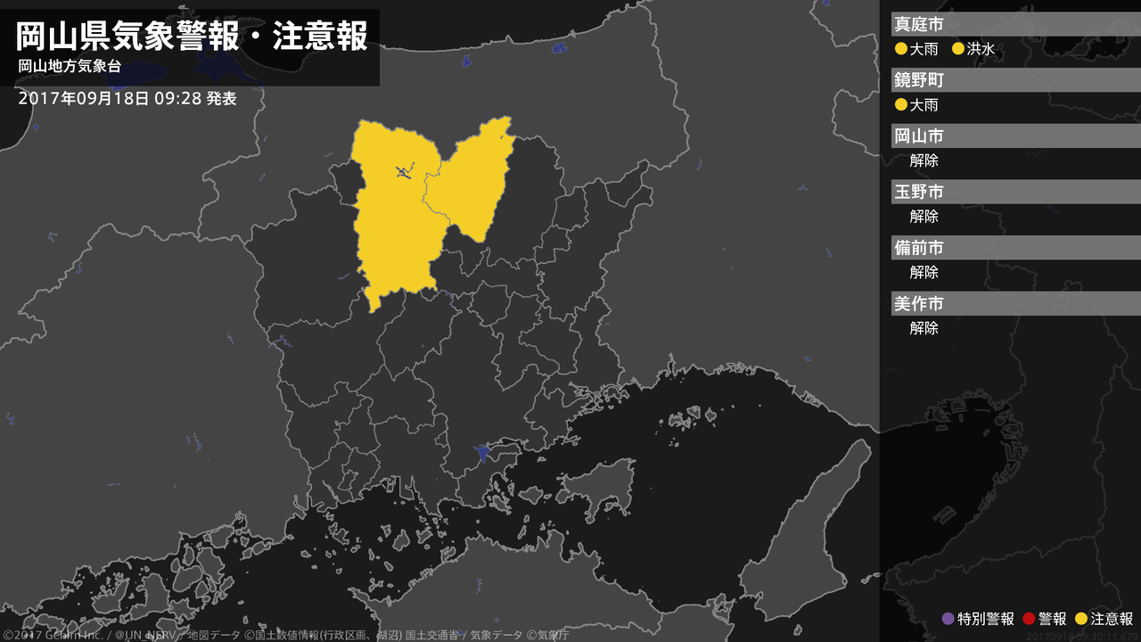 【大雨と雷及び突風に関する全般気象情報 2017年09月19日 16:33】