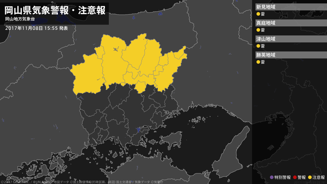 【岡山県 気象警報・注意報 2017年11月08日 15:55】