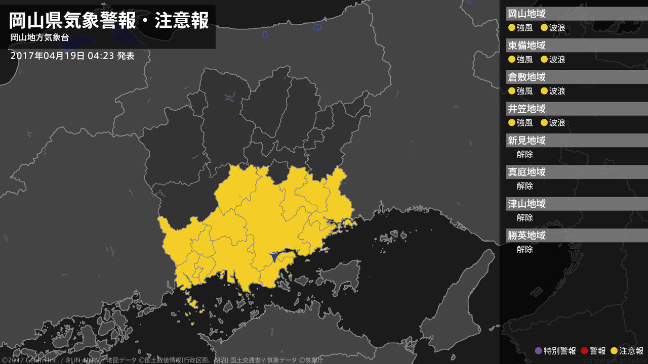 【暴風と高波及び雷に関する全般気象情報 2017年04月19日 16:27】