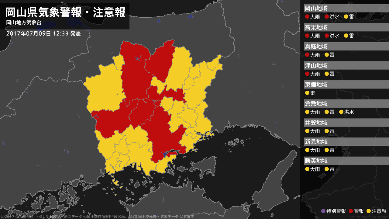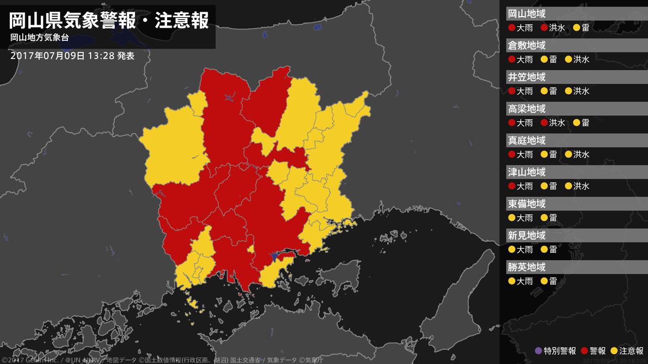 西日本では大気の状態が非常に不安定となっており、9日は非常に激しい雨の降るところがあるでしょう。九州北部地方では土砂災害に厳重に警戒してください。西日本を中心に、土砂災害や低い土地の浸水、河川の増水、落雷、竜巻などの激しい突風に注意してください。