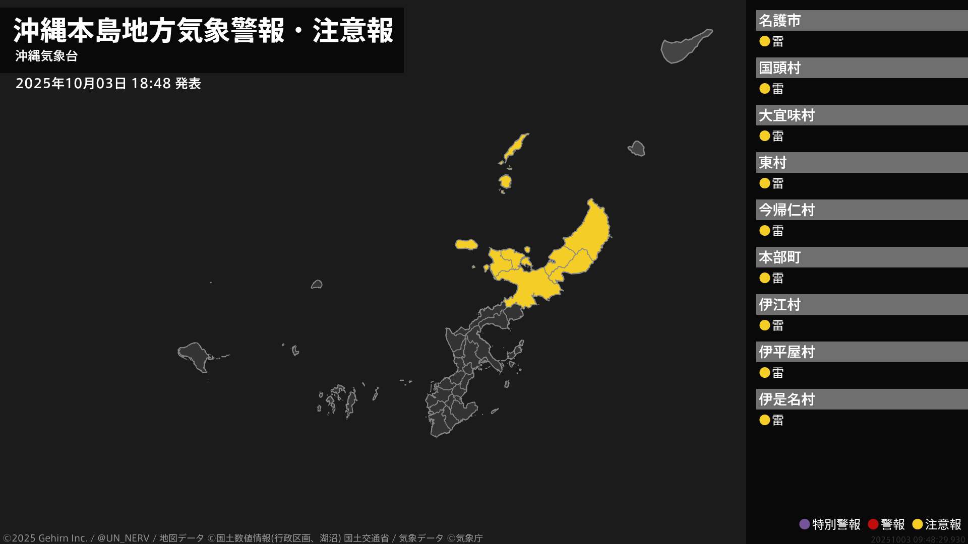 【大雨と雷及び突風に関する全般気象情報 2025年10月03日 16:42】