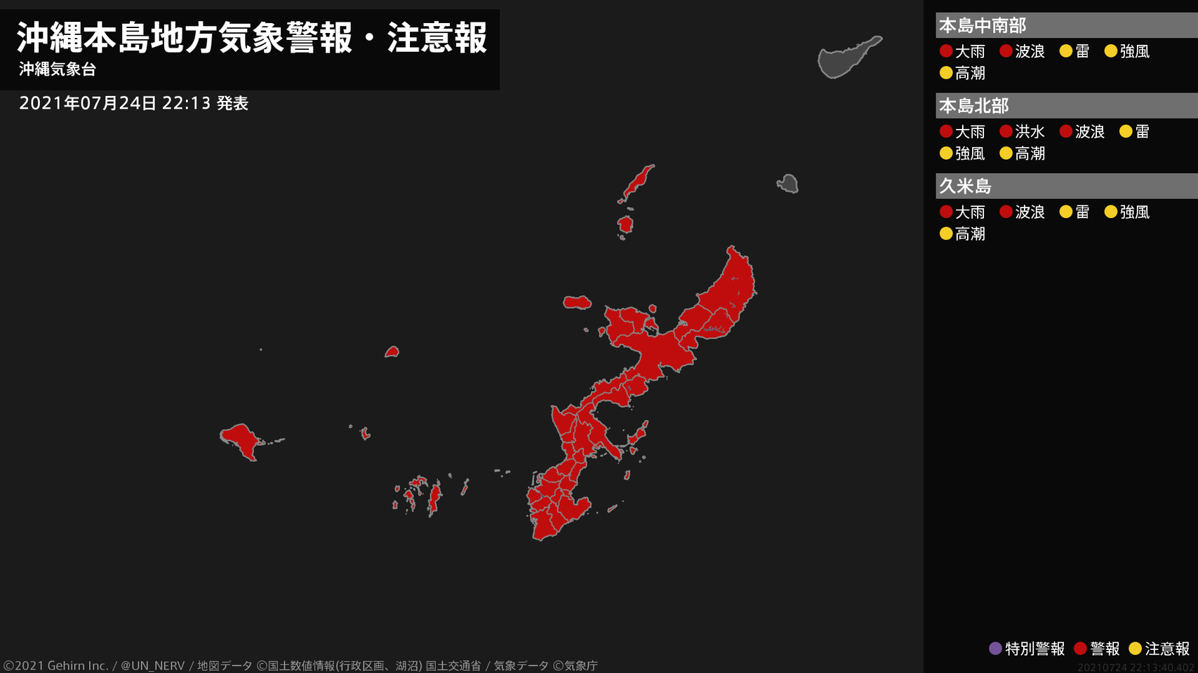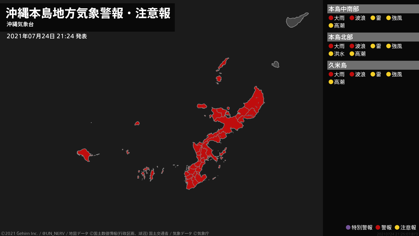 【沖縄本島地方 気象警報 2021年07月24日 21:33】