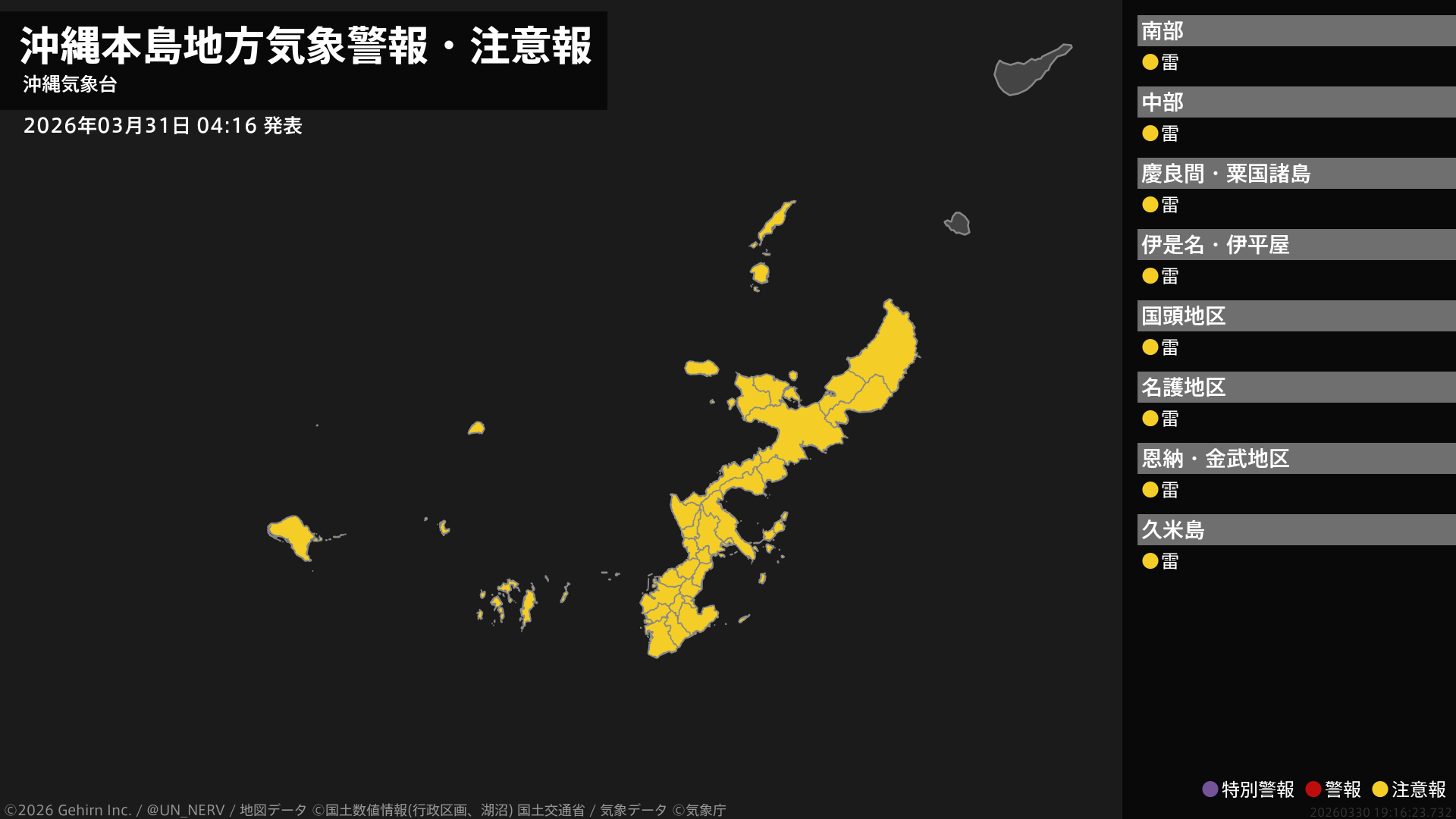 沖縄本島地方の情報を配信します。