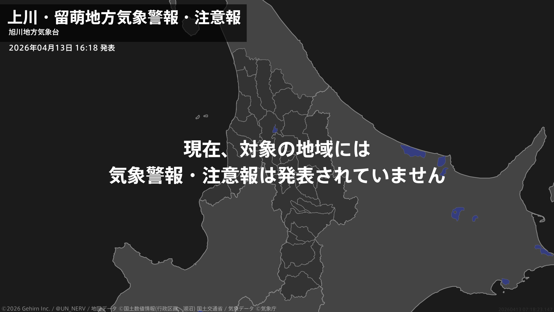 【上川・留萌地方 気象警報・注意報 2026年04月13日 16:18】