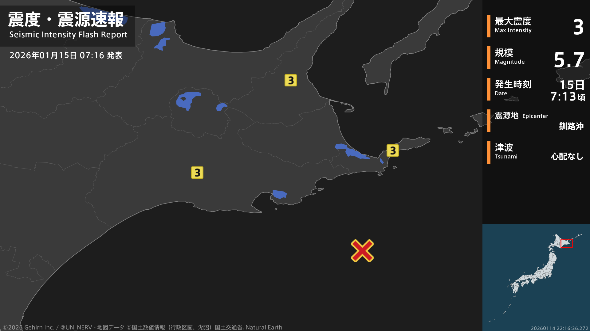 【雷と突風及び降ひょうに関する全般気象情報 2026年01月15日 04:40】