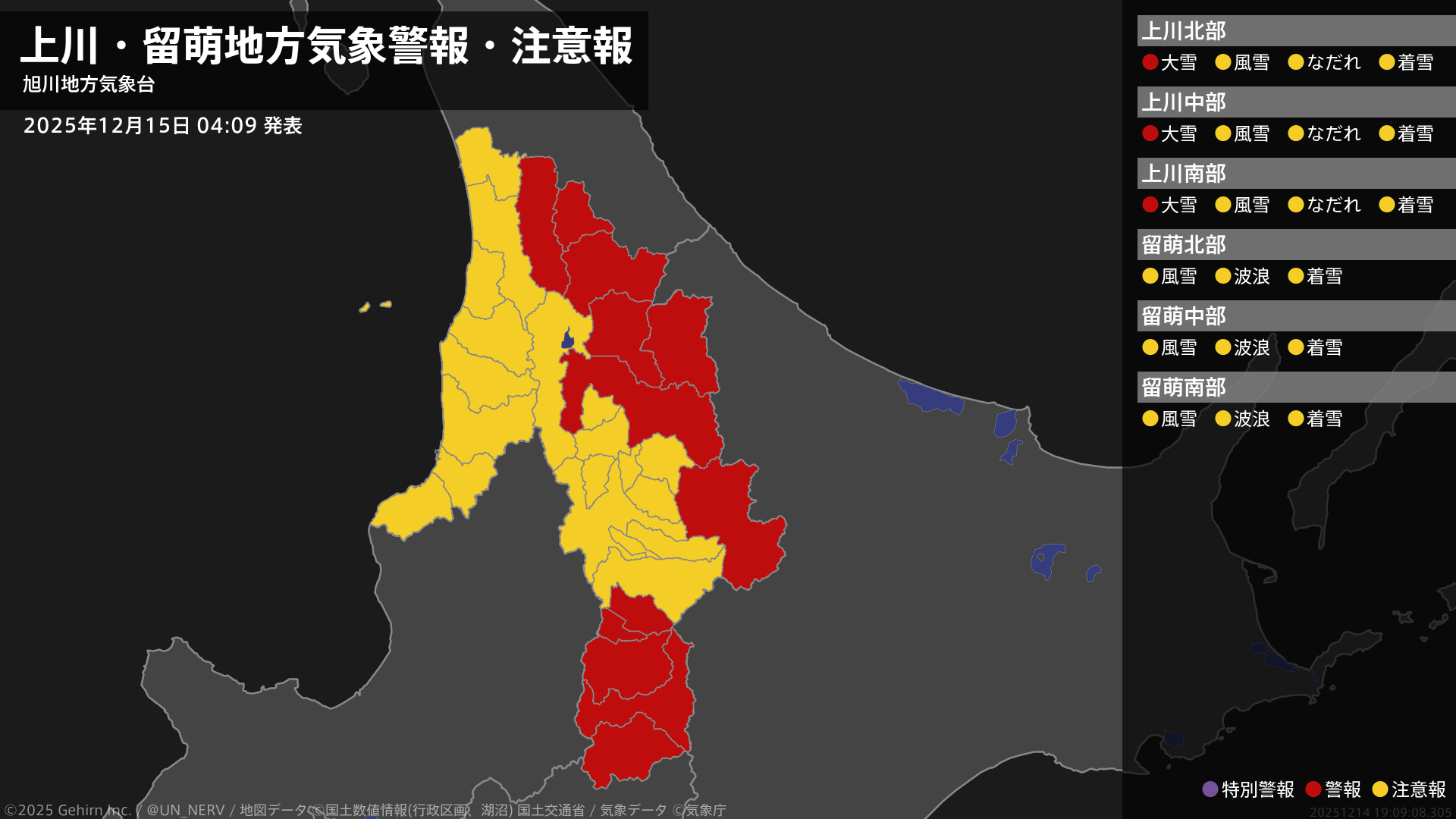 【暴風雪と高波及び大雪に関する全般気象情報 2025年12月15日 05:12】