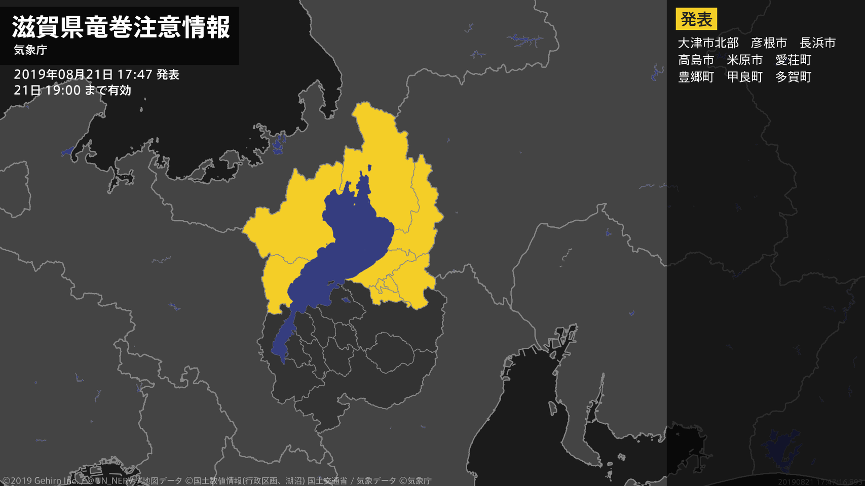 【大雨と雷及び突風に関する全般気象情報 2019年08月21日 16:16】