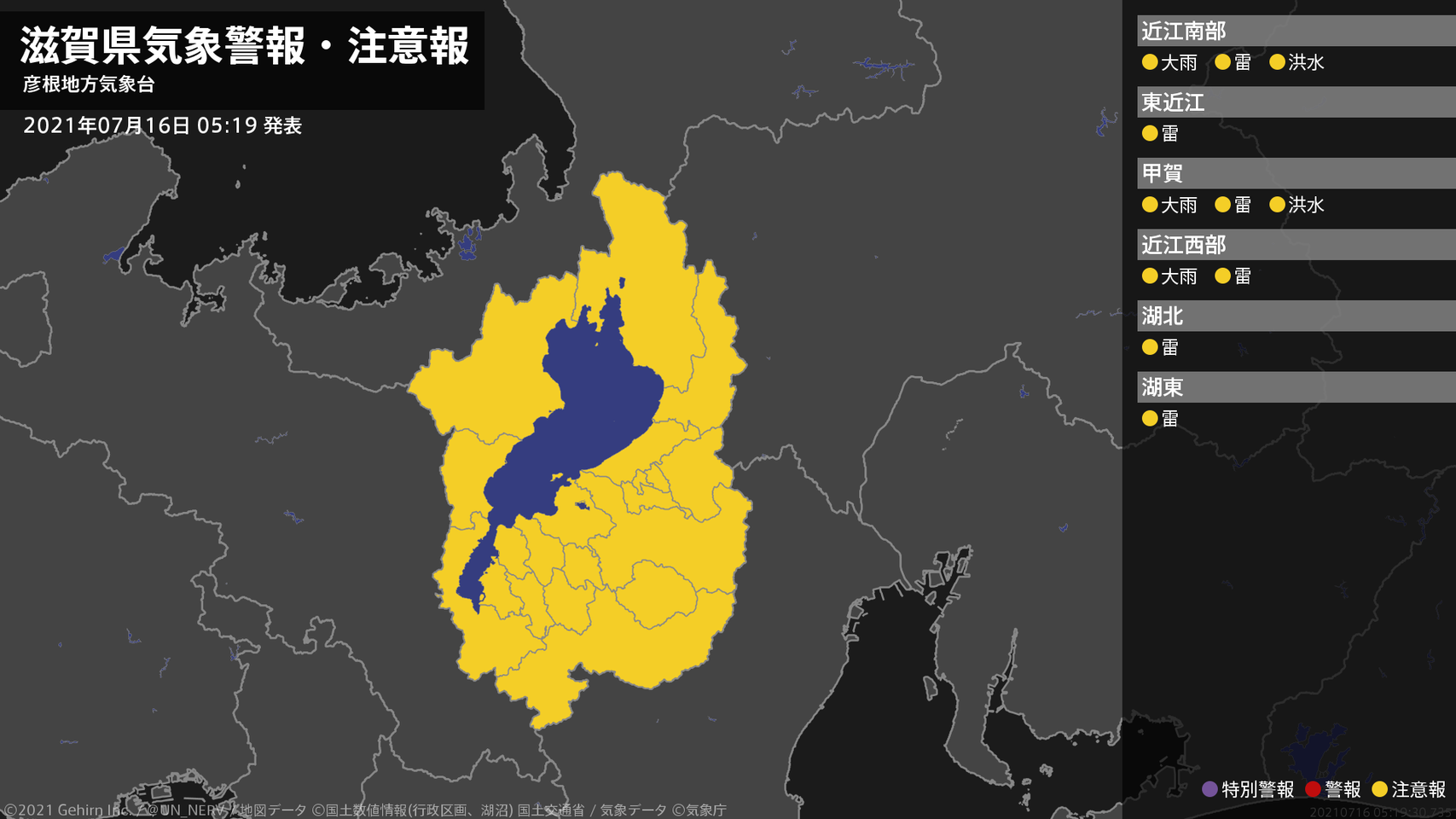 【大雨と雷及び突風に関する全般気象情報 2021年07月16日 16:33】