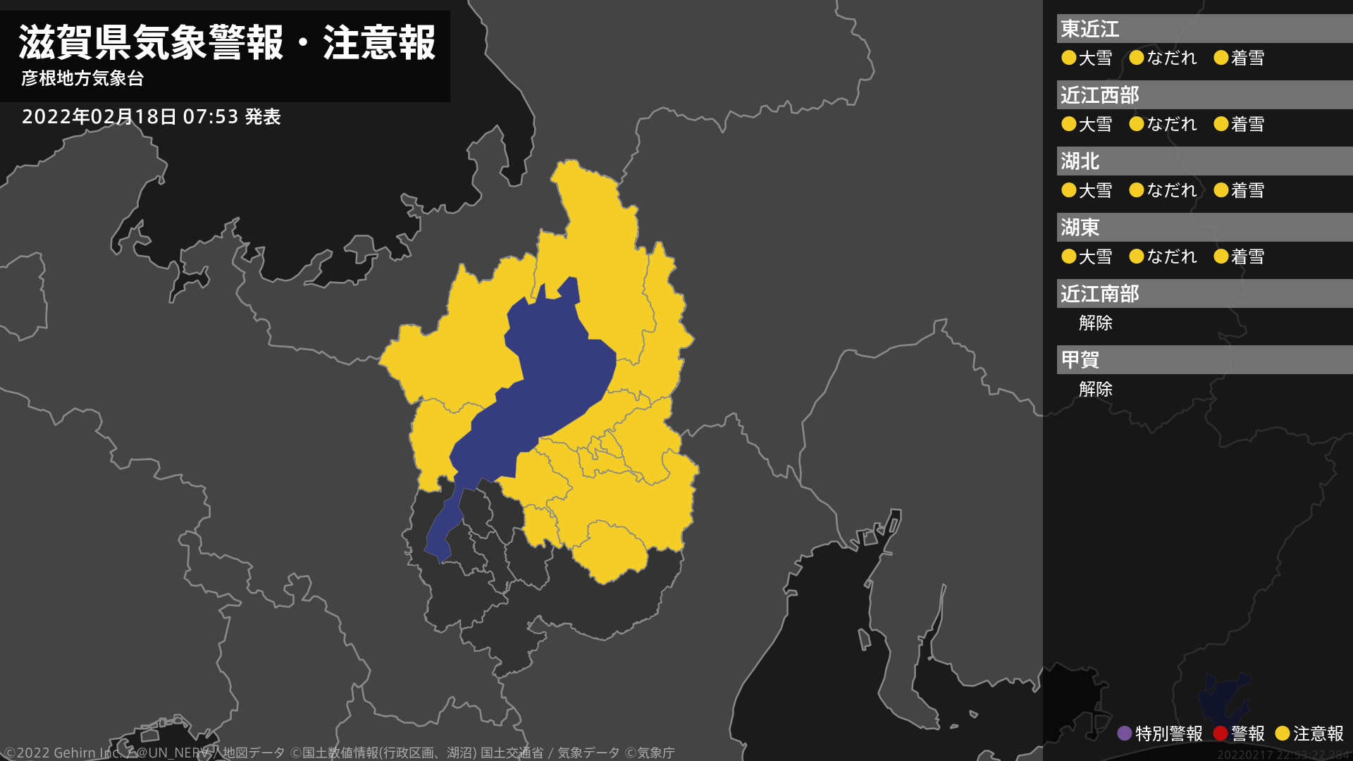 【滋賀県 気象警報・注意報 2022年02月18日 07:53】