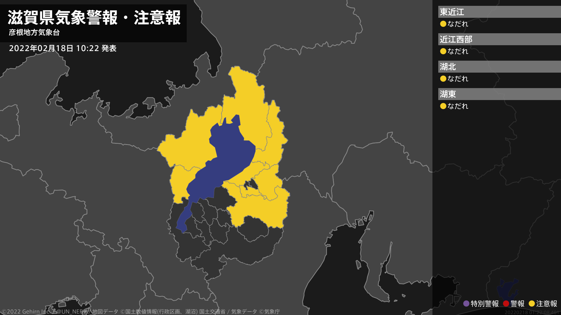 【滋賀県 気象警報・注意報 2022年02月18日 10:22】