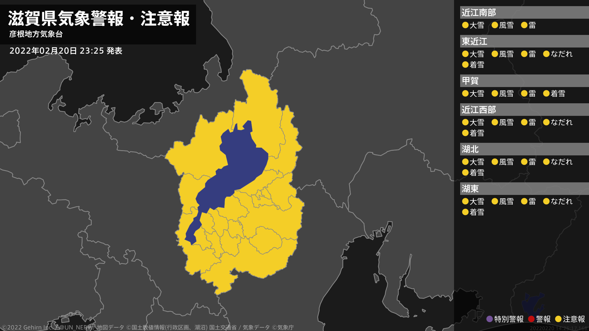 【滋賀県 気象警報・注意報 2022年02月20日 23:25】