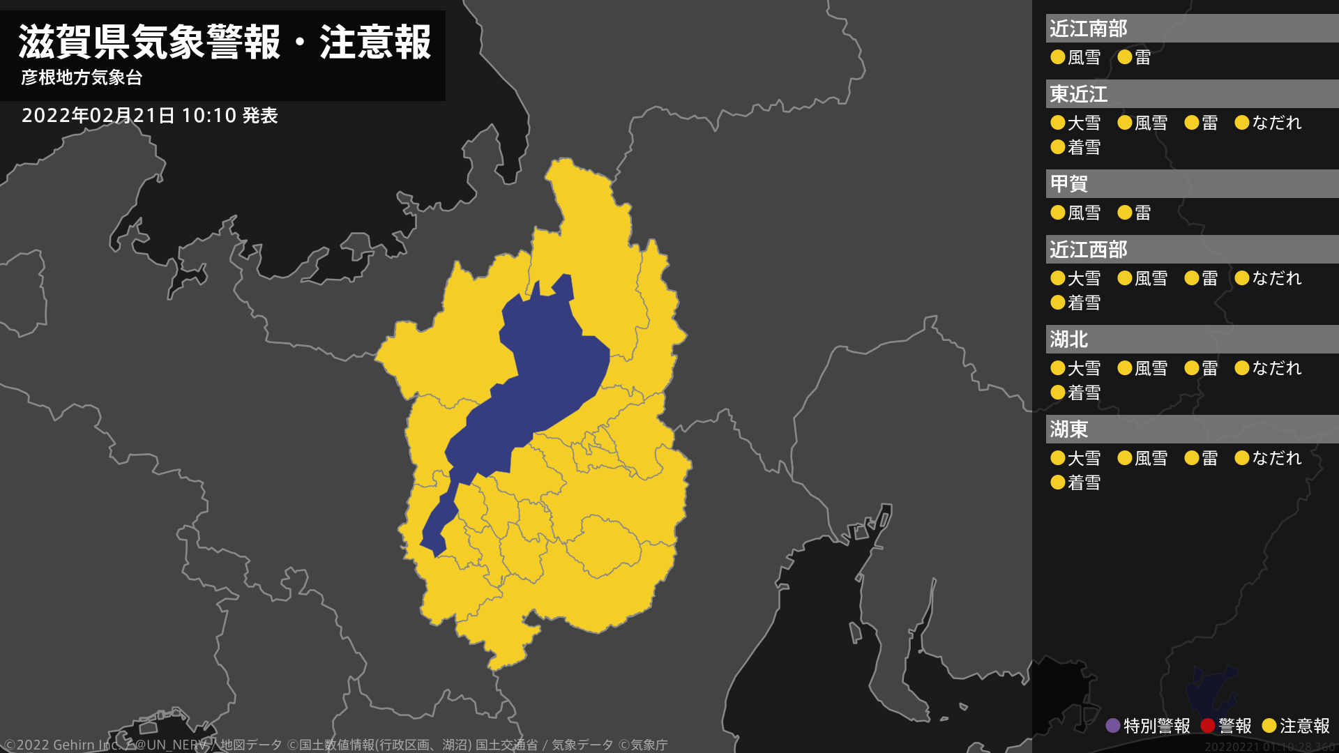 【滋賀県 気象警報・注意報 2022年02月21日 10:10】