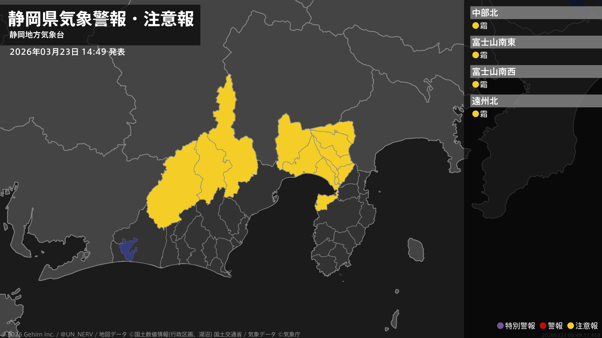 【静岡県 気象警報・注意報 2026年03月23日 14:49】