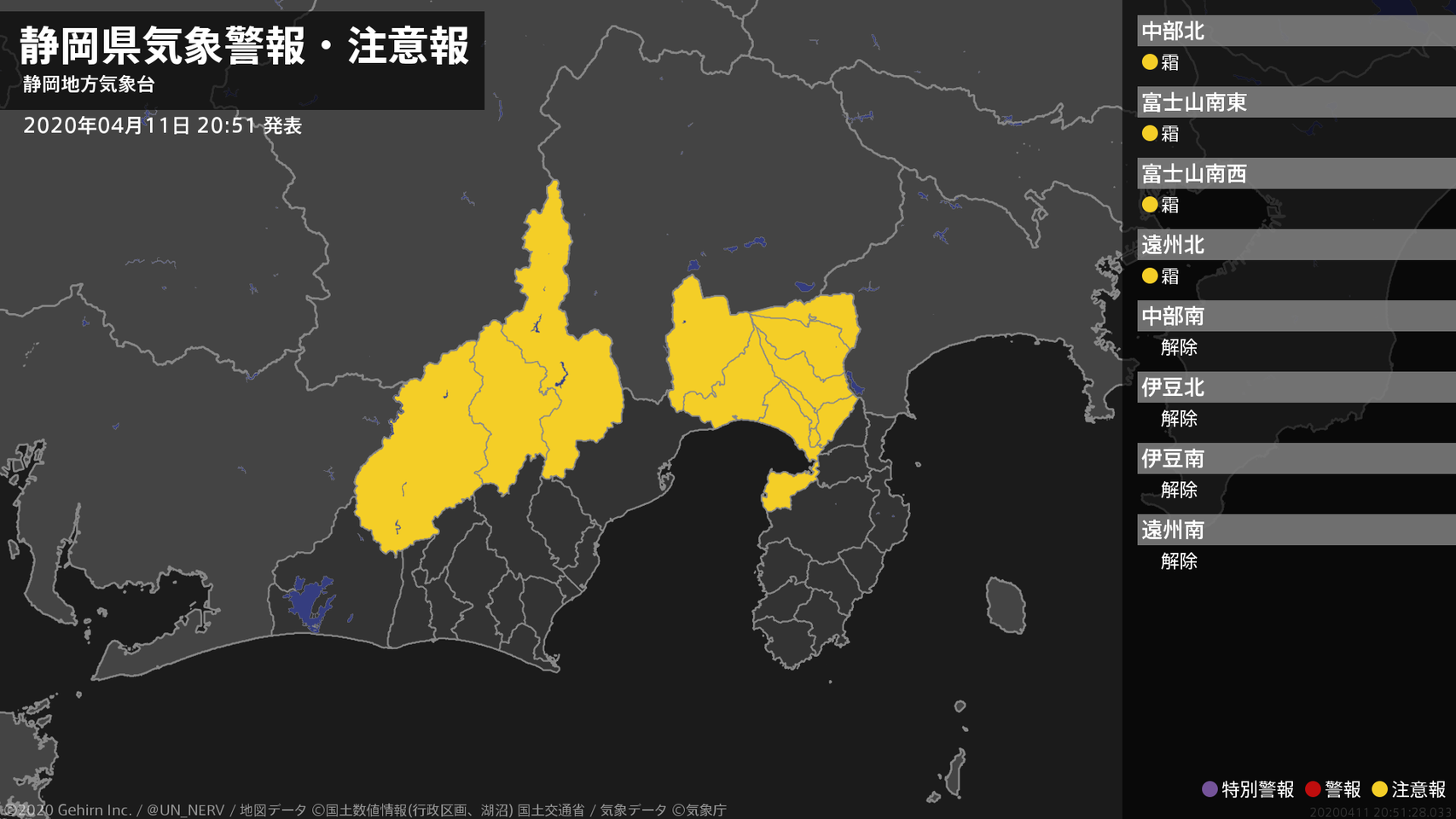 【静岡県 気象警報・注意報 2020年04月11日 20:51】