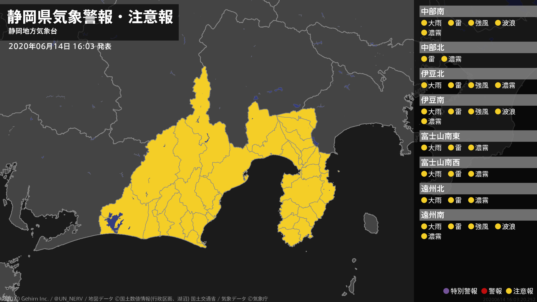 【大雨と雷及び突風に関する全般気象情報 2020年06月14日 16:25】