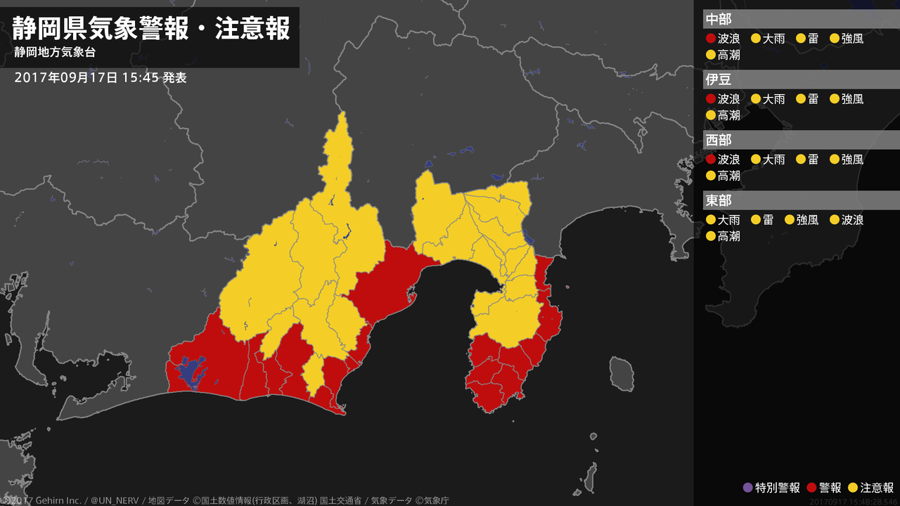 【静岡県 気象警報 2017年09月17日 15:48】
