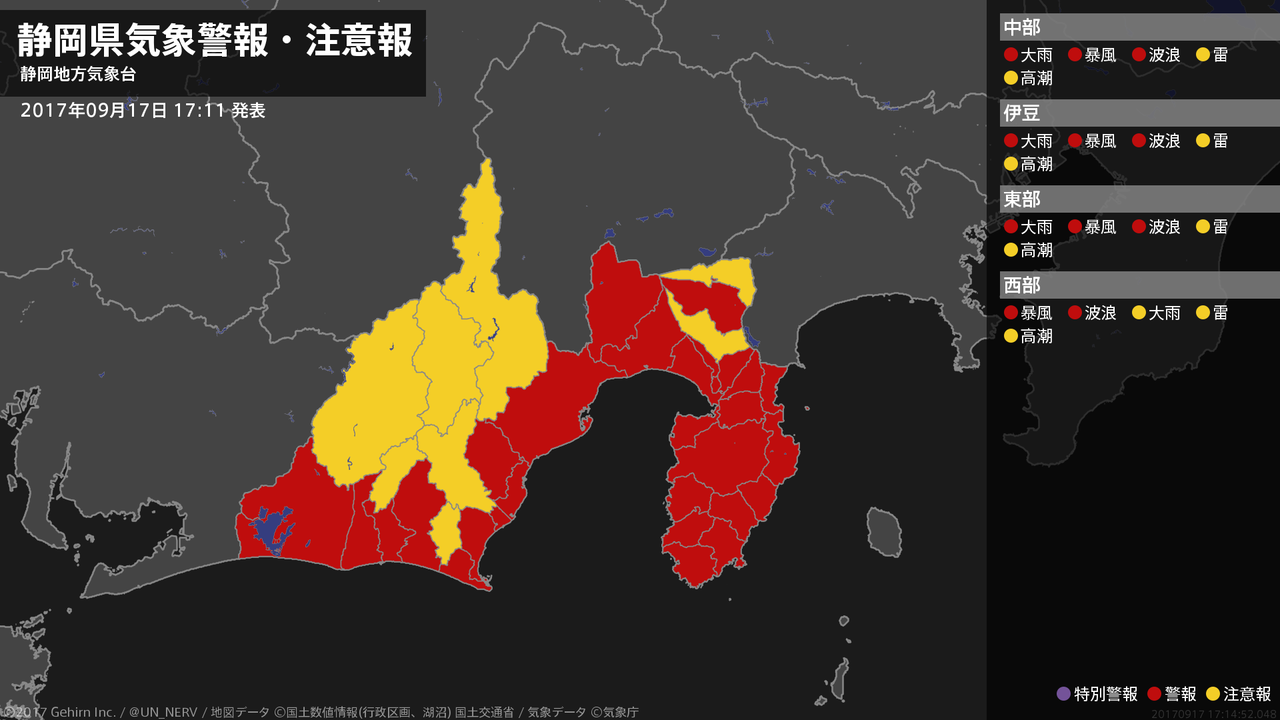 【静岡県 気象警報 2017年09月17日 17:14】
