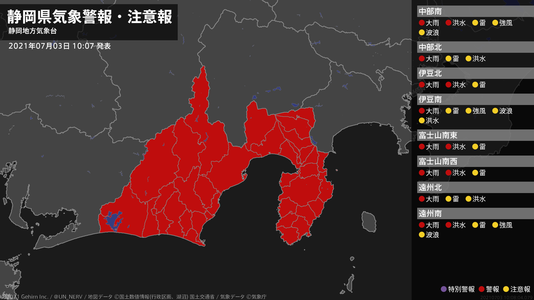 【静岡県 気象警報・注意報 2021年07月03日 04:11】