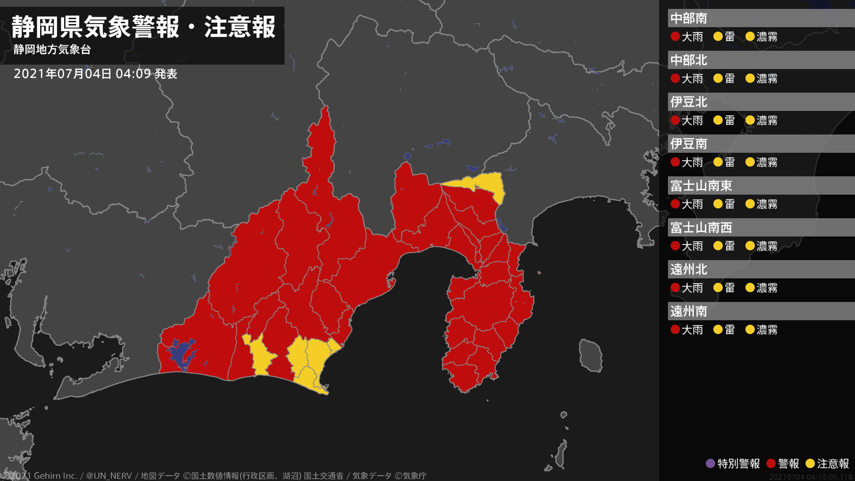 【大雨に関する全般気象情報 2021年07月04日 05:00】