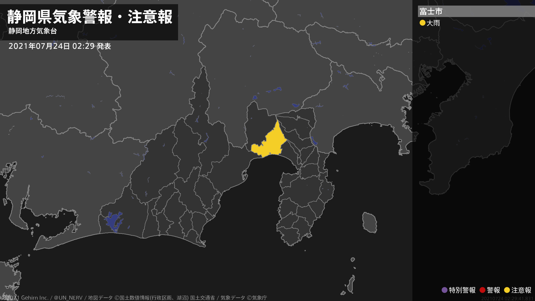 【静岡県 気象警報・注意報 2021年07月24日 02:29】